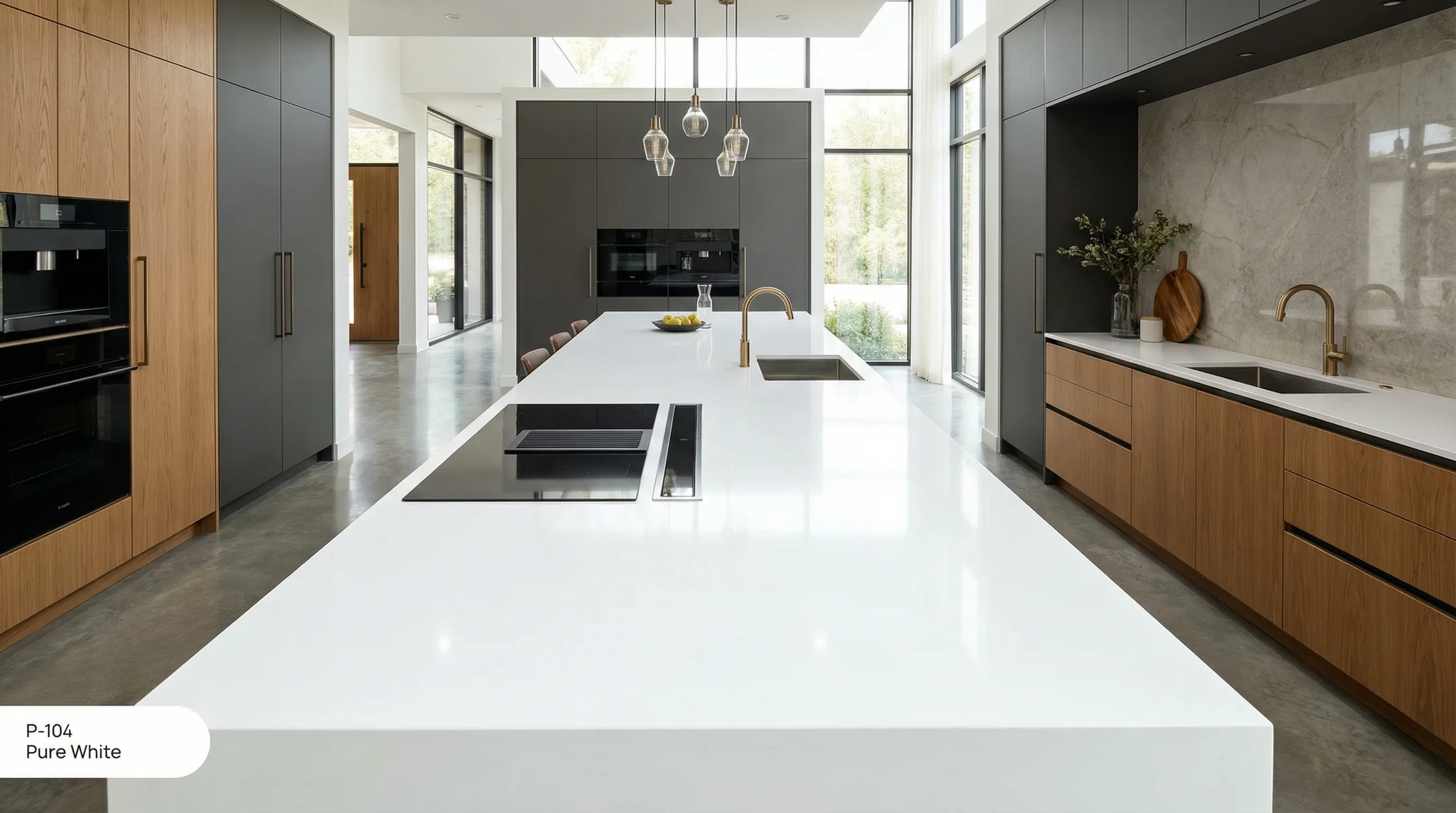 Эта поверхность воплощает в себе идею совершенного минимализма. Безупречно чистый белый цвет без лишних вкраплений и текстурных шумов создает ощущение безграничного пространства. Гладкая, почти зеркальная плоскость мягко рассеивает свет, наполняя интерьер благородным сиянием и визуальной легкостью, которая остается актуальной вне зависимости от переменчивых трендов.