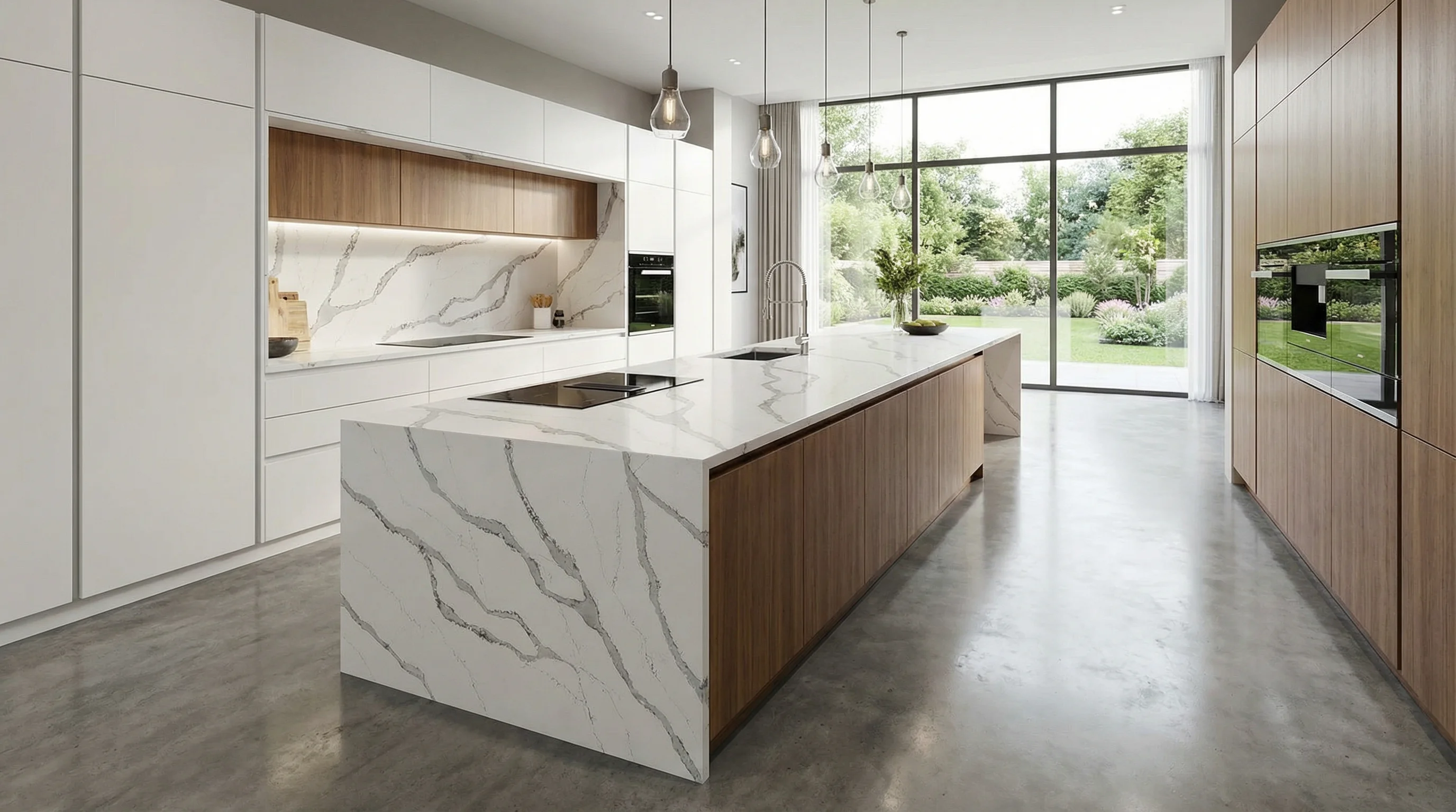 Это воплощение чистоты и благородства в интерьере. Идеально белый фон служит естественным холстом для выразительных серых вен, которые создают неповторимый, динамичный рисунок, напоминающий морозные узоры или очертания горных хребтов. Текстура поверхности притягивает взгляд и дарит приятные тактильные ощущения, привнося в пространство чувство легкости, масштабности и абсолютной гармонии.