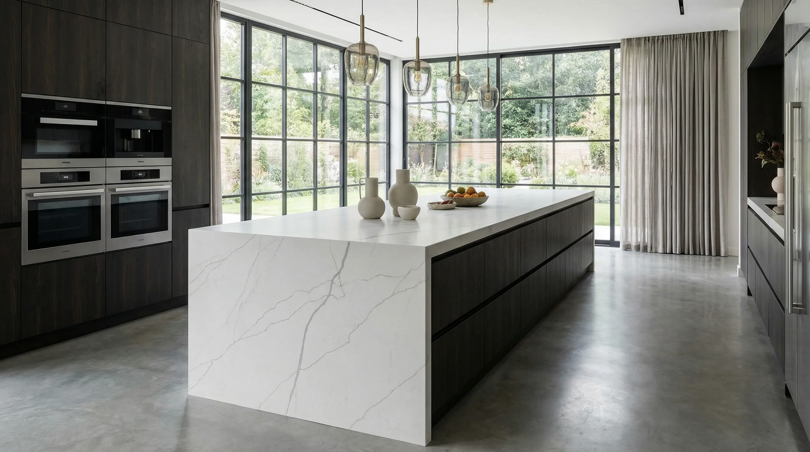 Этот материал воплощает в себе эстетику безупречной чистоты и современного минимализма. Гладкое белоснежное полотно пронизано тонкими, изящными серыми прожилками, которые напоминают росчерк зимнего ветра на горном плато. Глубина фактуры и мягкое сияние поверхности создают атмосферу спокойствия, становясь главным визуальным акцентом в интерьере.