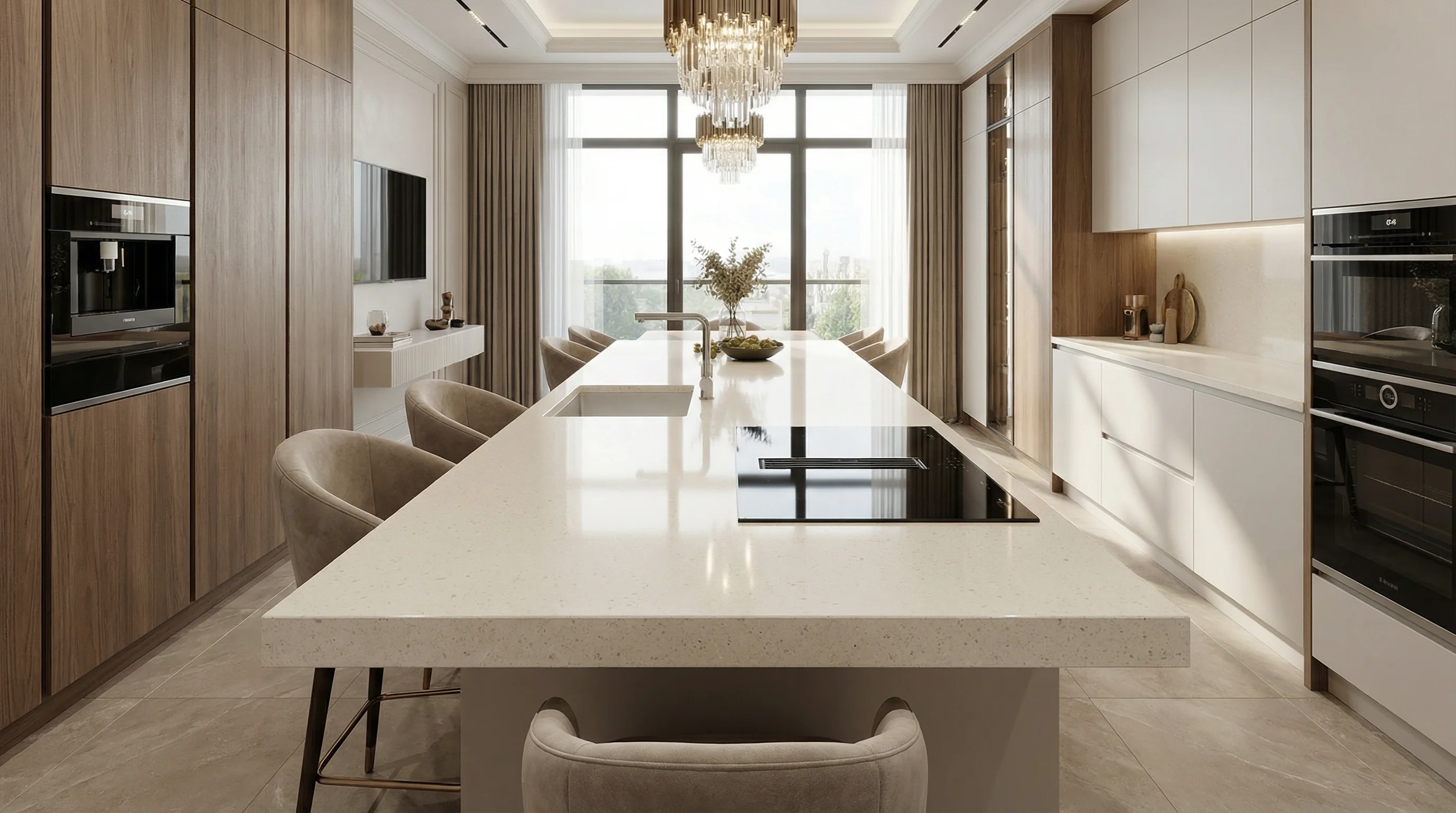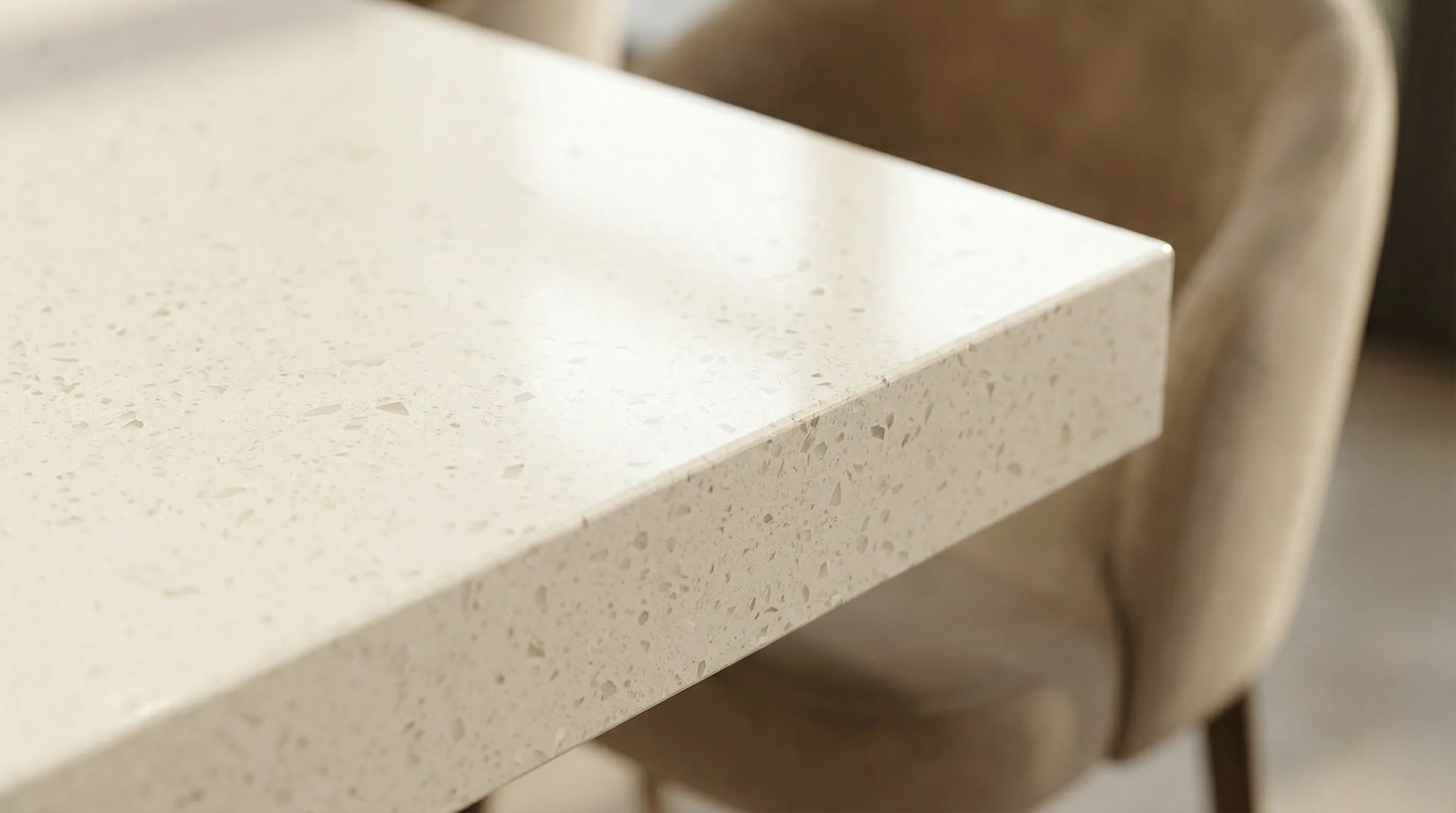 Эта великолепная столешница, выполненная в изысканном оттенке Crystal Beige, станет воплощением утонченного стиля и непревзойденного качества на вашей кухне. Поверхность камня привлекает внимание своей мягкой, естественной текстурой и легким, ненавязчивым мерцанием мельчайших вкраплений, придавая интерьеру ощущение спокойной роскоши.