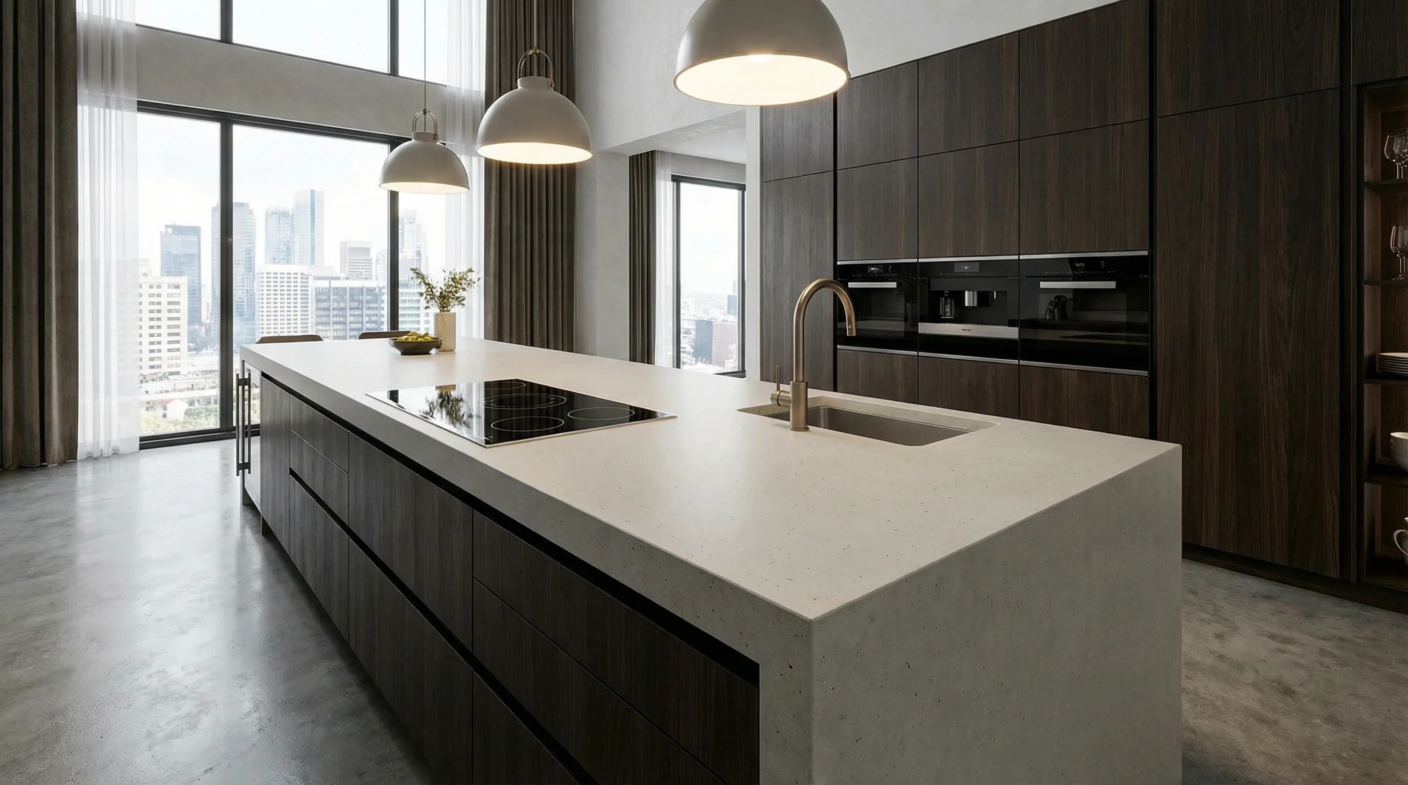 Эта столешница – не просто функциональный элемент, а настоящий арт-объект, способный преобразить ваше пространство. Она придает кухне нотку сдержанной роскоши и утонченности, становясь центральным элементом интерьера и подчеркивая безупречный вкус владельца.