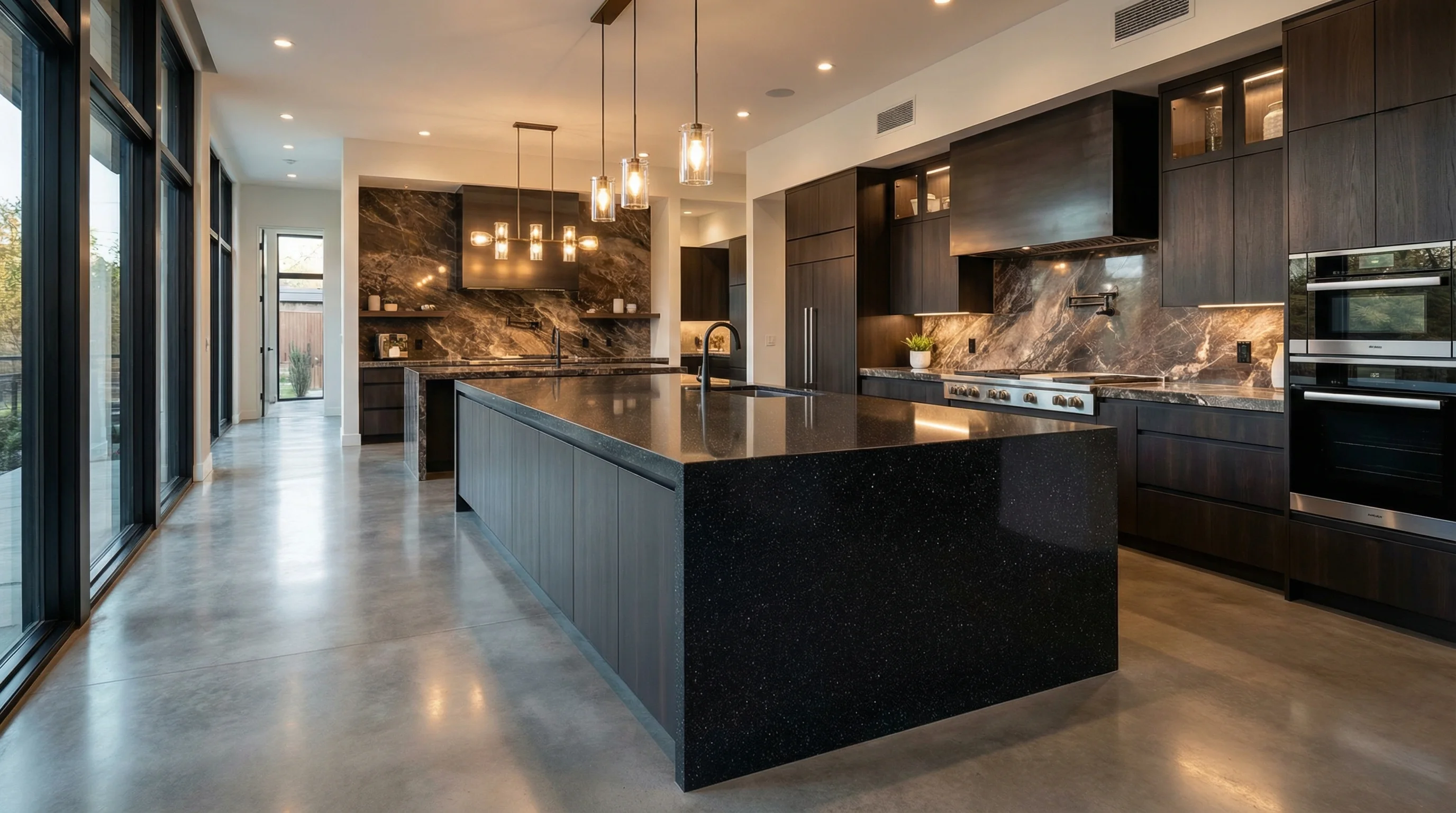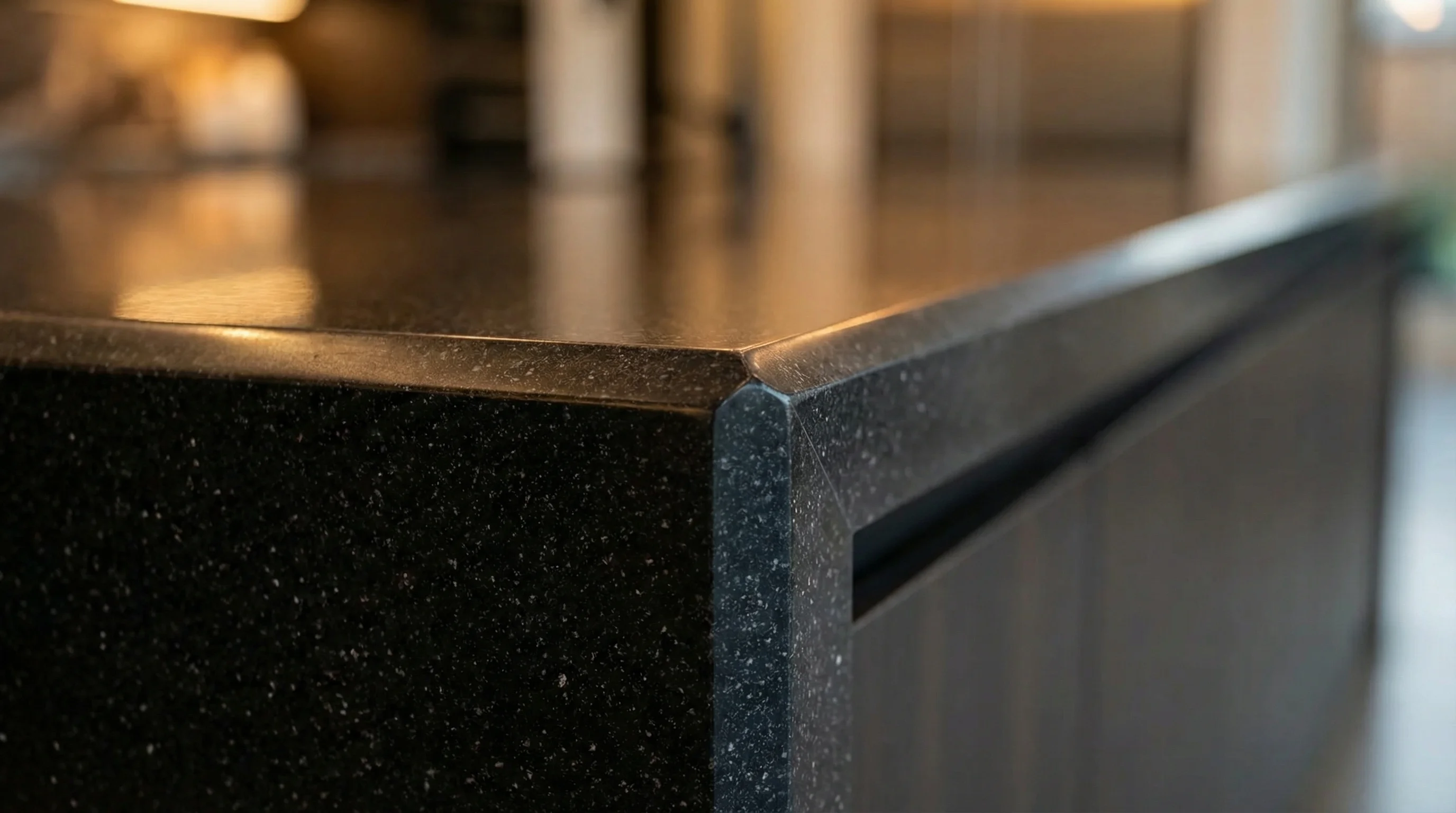 Глубокий, насыщенный оттенок этого полотна воплощает в себе эстетику бескрайнего ночного неба. Тончайшие вкрапления, напоминающие далекие созвездия, оживают при малейшем изменении освещения, придавая поверхности благородное мерцание и визуальный объем. Идеально гладкая фактура дарит приятные тактильные ощущения, раскрывая всю многогранность и сложность темного минерала в современном интерьере.
