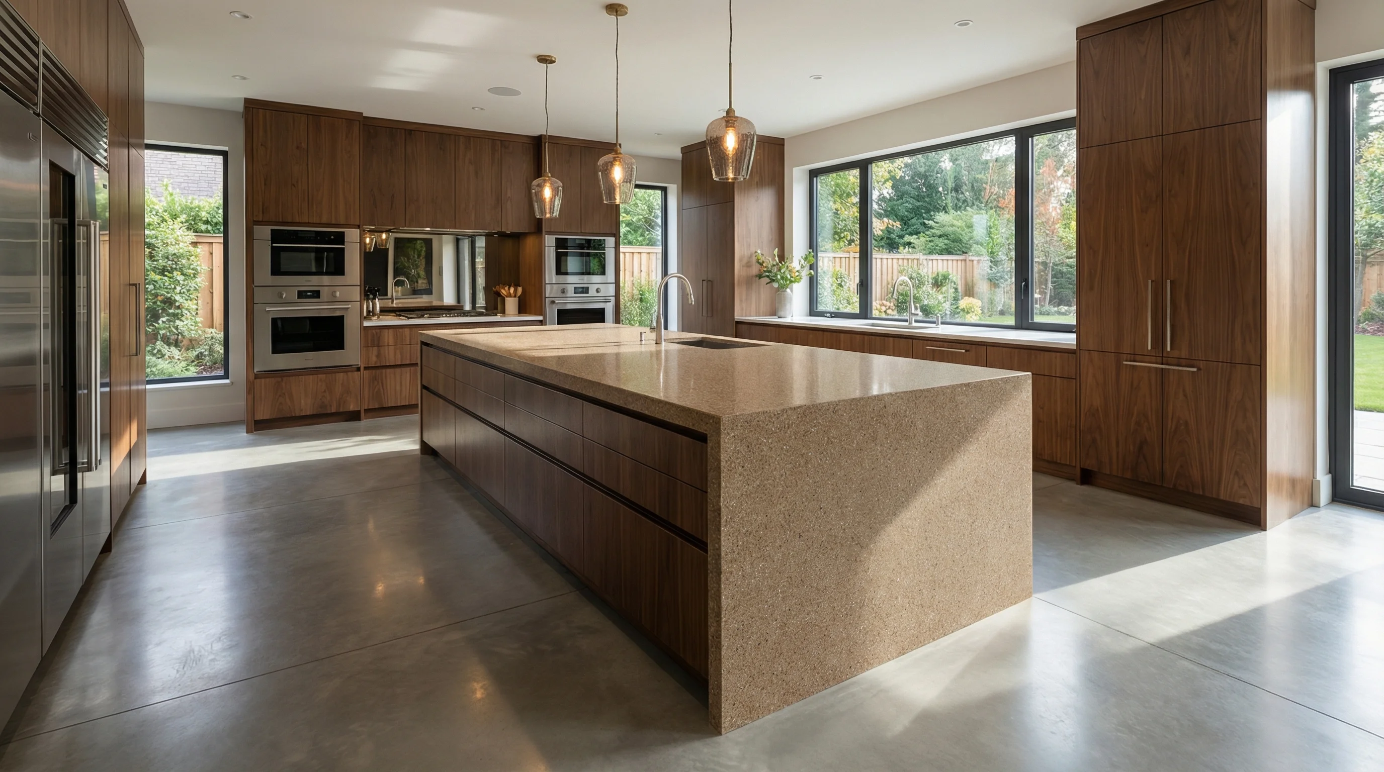 Непревзойденная плотность и устойчивость к внешним воздействиям делают это изделие эталоном долговечности. Поверхность инертна к влаге и бытовым загрязнениям, сохраняя первозданную красоту десятилетиями при минимальном уходе. Тактильно приятная фактура в сочетании с визуальной монолитностью подчеркивает монументальный характер и высокий статус вашего кухонного пространства.