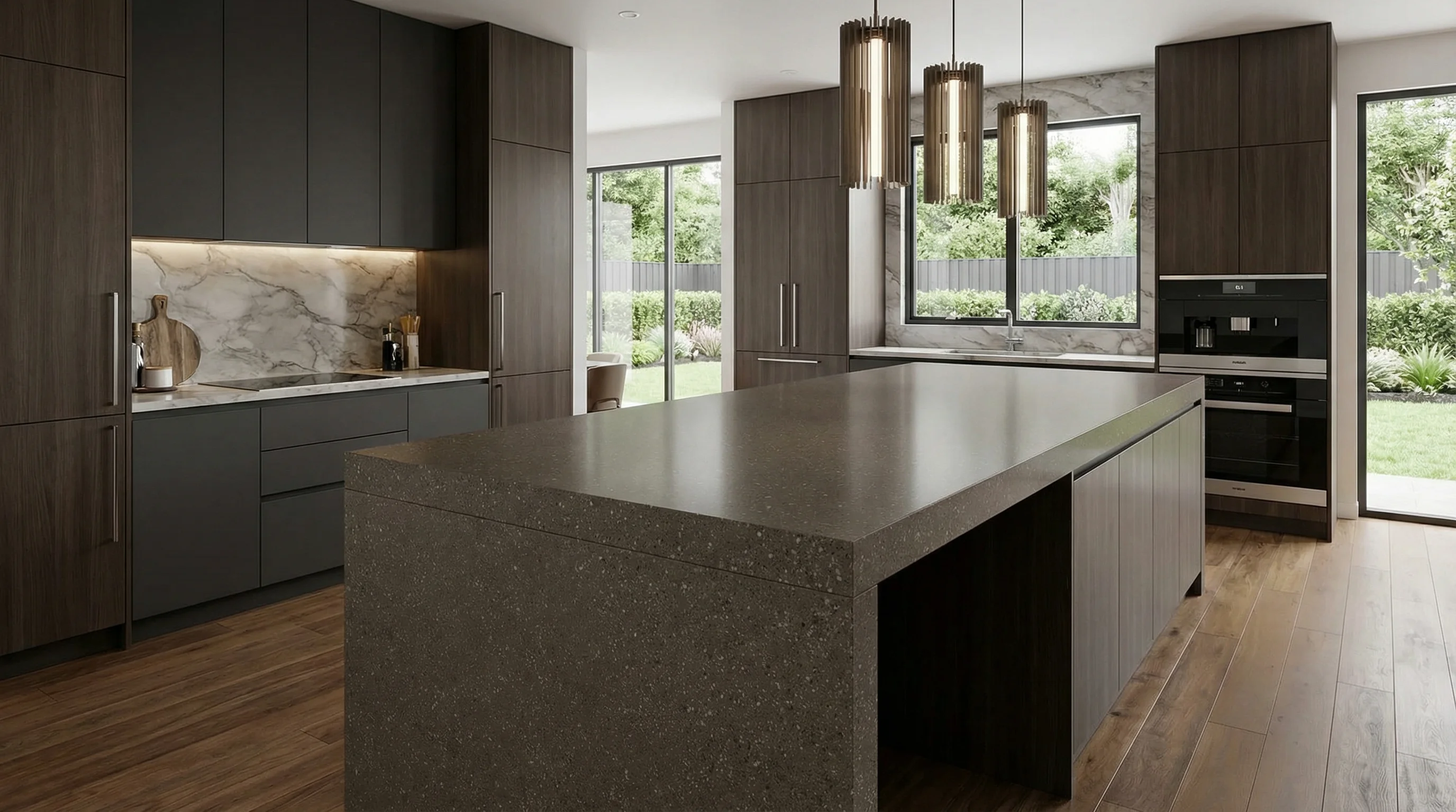 Помимо исключительной визуальной составляющей, материал обладает выдающимися эксплуатационными характеристиками. Плотная, лишенная пор структура делает рабочую зону невосприимчивой к пятнам, влаге и бытовым нагрузкам, обеспечивая безупречную гигиеничность. Эта поверхность сохраняет первозданную гладкость и глубину цвета на десятилетия, оставаясь воплощением надежности и уверенного стиля в самом сердце вашего дома.