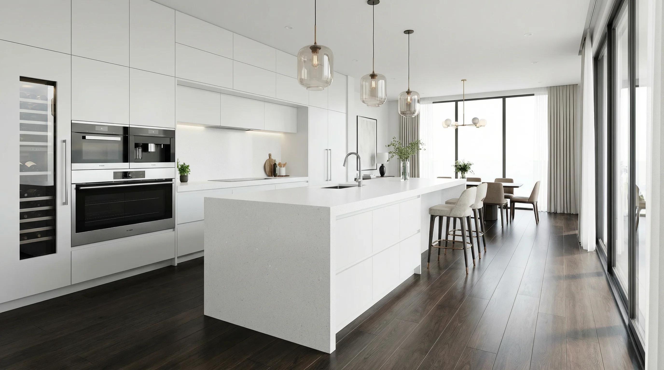 Поверхность обладает исключительной износостойкостью и непористой структурой, что делает её практически неуязвимой для повседневного использования. Она не боится капель воды, перепадов температур и загрязнений, оставаясь идеально гладкой долгие годы. Это выбор для тех, кто ценит не только эстетическое совершенство и тактильное удовольствие, но и абсолютную уверенность в качестве каждого сантиметра своего дома.