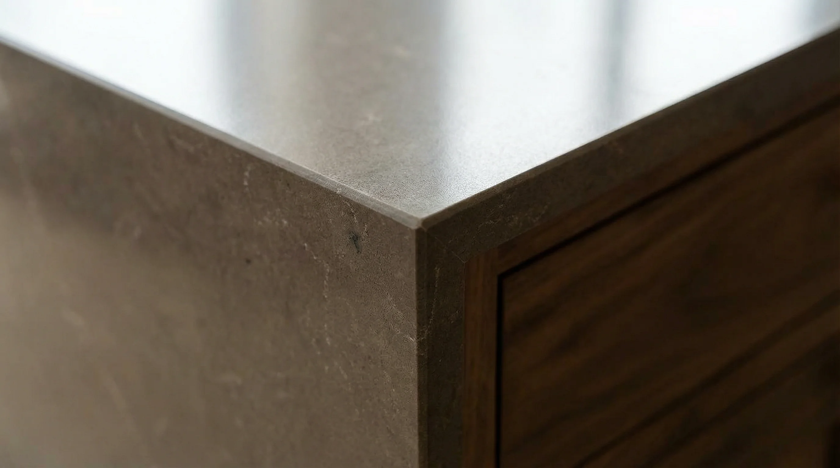 Эта премиальная поверхность, выполненная в глубоком коричневом оттенке, сразу притягивает взгляды своей элегантной, утонченной красотой. Визуальный эффект усиливается за счет деликатных светлых прожилок, которые, подобно тонкой вуали, пронизывают материал, придавая ему объем и благородство. Она создает атмосферу роскоши и безупречного стиля в любом интерьере, будь то современная кухня или классическая ванная комната.