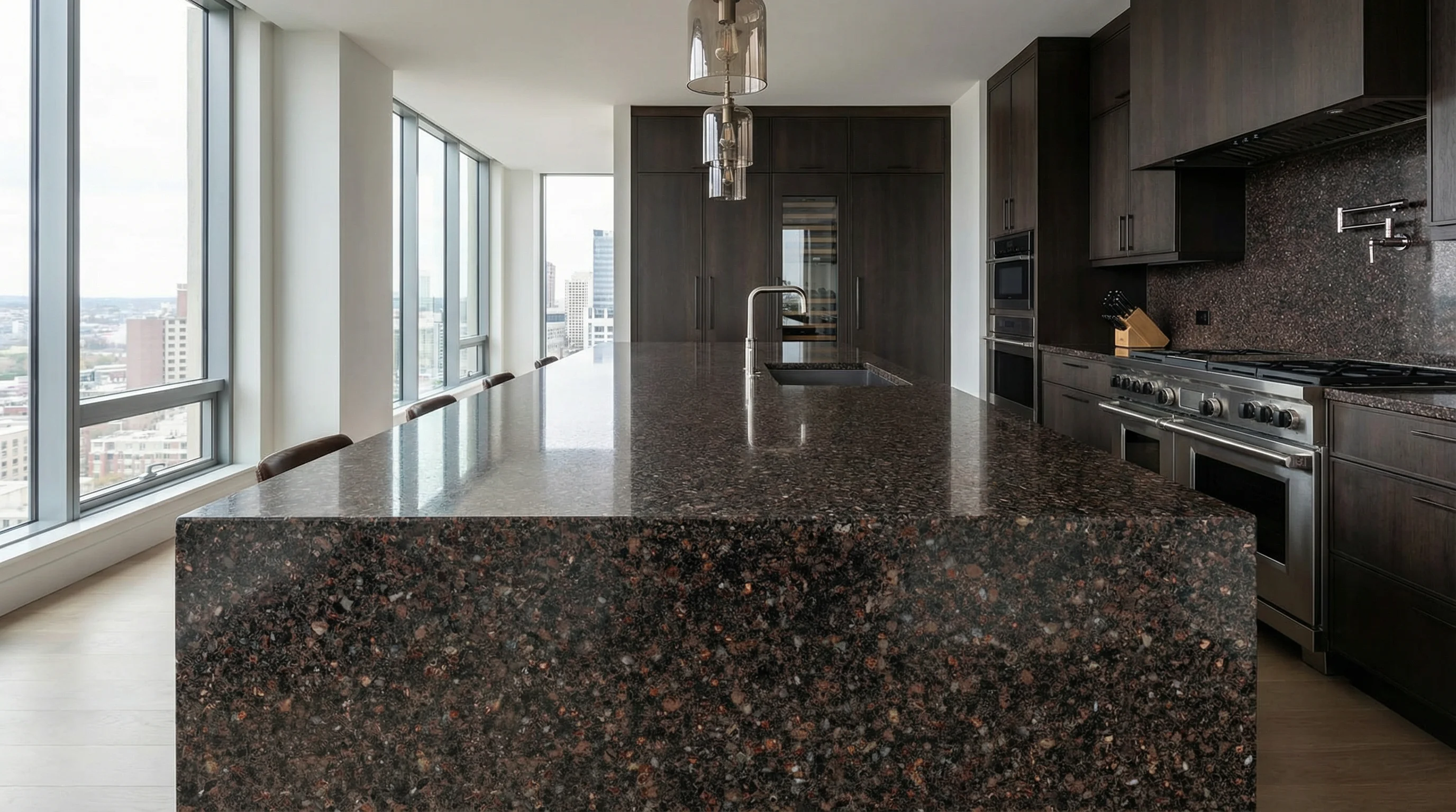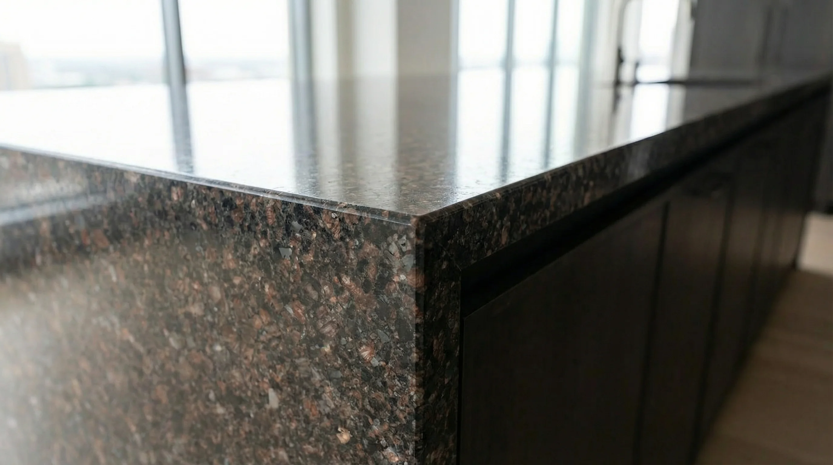 Глубокая палитра этого изделия завораживает сложной игрой оттенков: от насыщенного шоколадного до благородного бронзового мерцания. Мелкозернистая структура создает неповторимый природный рисунок, который эффектно раскрывается под лучами света, придавая поверхности визуальный объем и мягкий внутренний блеск. Идеально гладкая, зеркальная полировка подчеркивает благородство материала, превращая рабочую зону в центральный элемент интерьера.