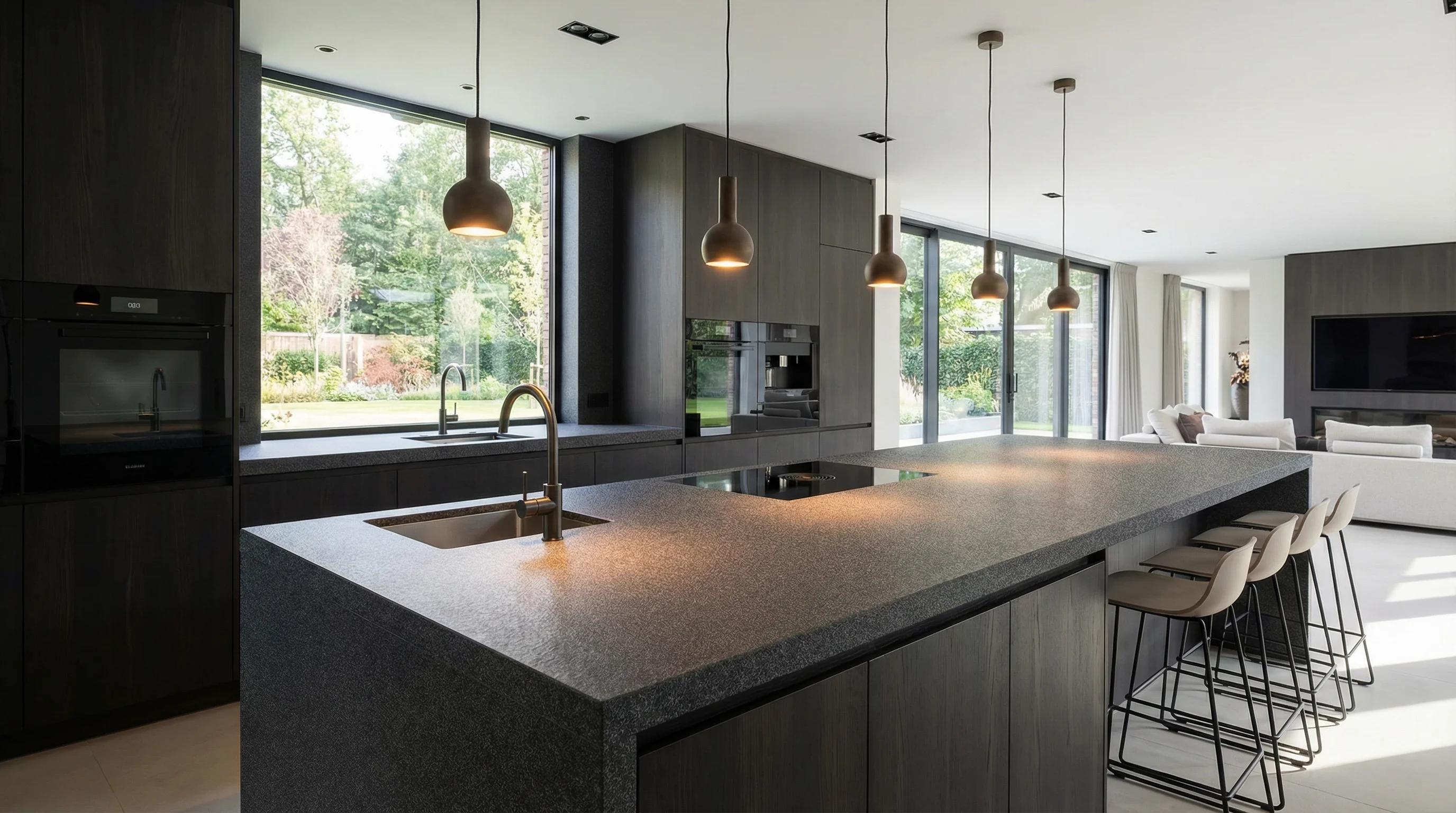 Это изделие воплощает в себе глубокую эстетику ночного неба, предлагая интерьеру бескомпромиссную уверенность. Мелкозернистая текстура в глубоких графитовых тонах создает богатую игру полутонов при разном освещении, превращая поверхность в монолитное произведение искусства. Приятная на ощупь, фактурная поверхность придает пространству архитектурную выразительность и подчеркивает строгость современных минималистичных линий.