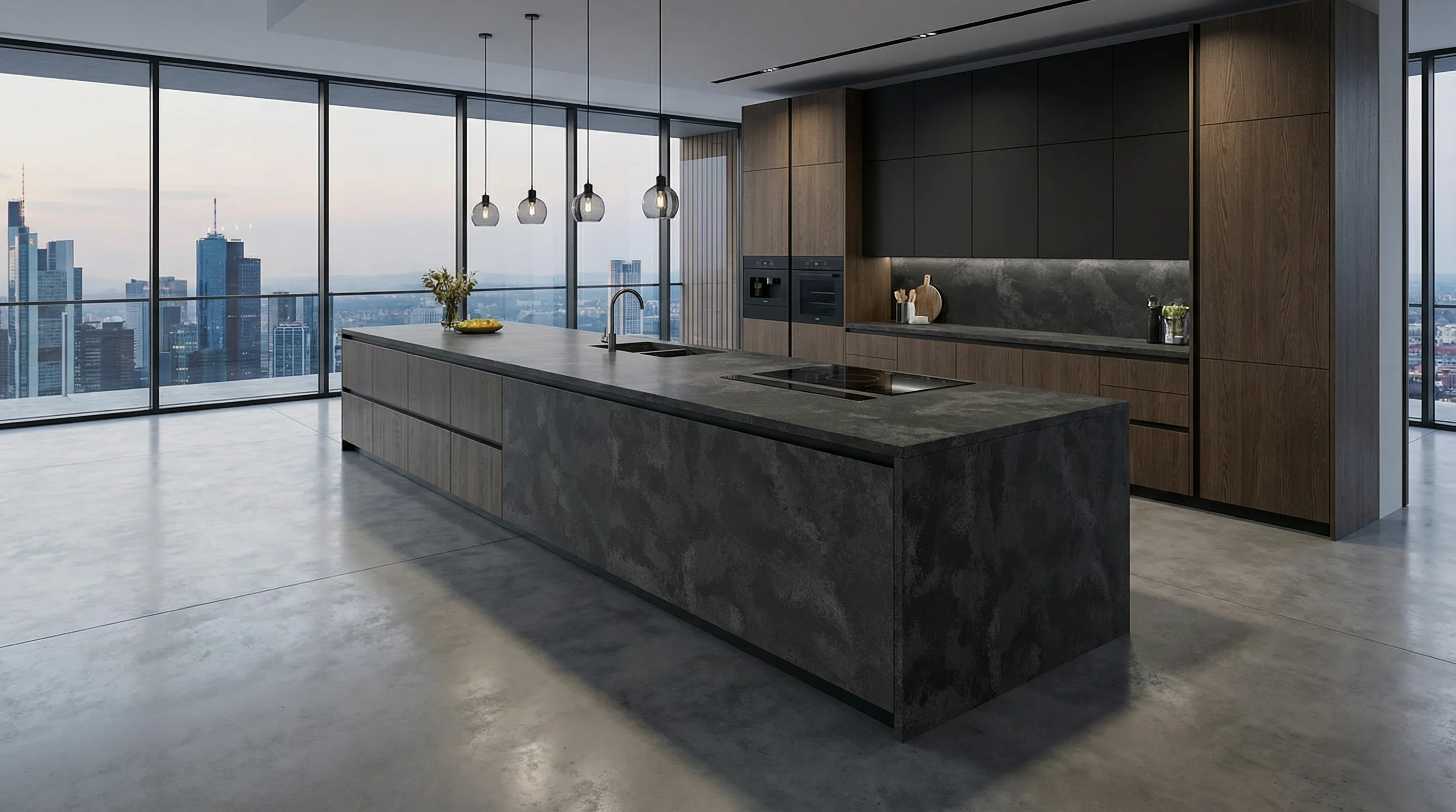 Исключительная плотность материала обеспечивает высочайшую долговечность и устойчивость к внешним воздействиям. Поверхность не впитывает влагу, инертна к бытовым загрязнениям и сохраняет первозданный вид десятилетиями. Это союз визуальной глубины и технологичного исполнения, где каждый сантиметр пространства спроектирован для комфортной жизни, не требующей компромиссов между стилем и практичностью.
