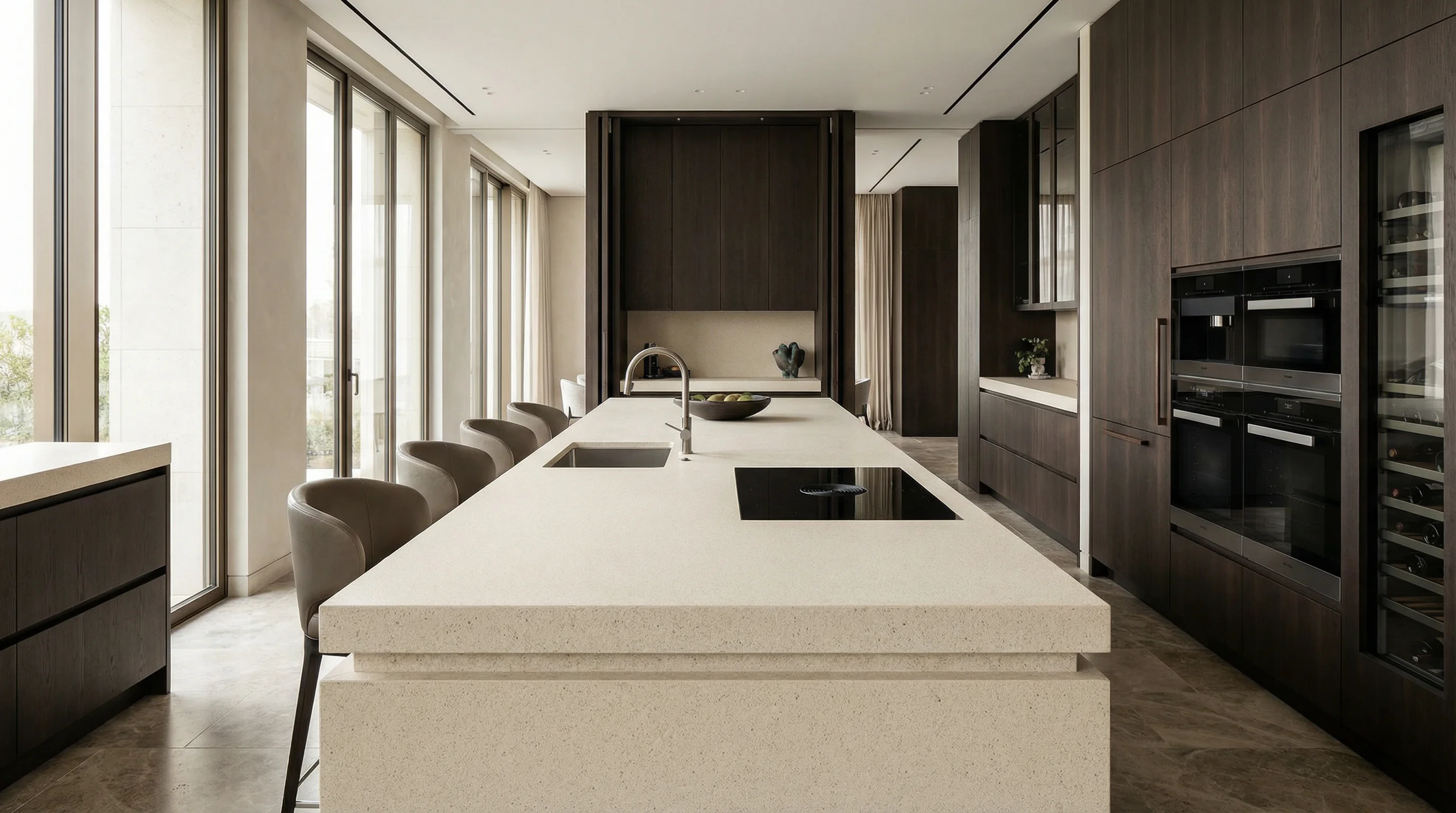 Бескомпромиссная надежность скрыта за внешней лаконичностью. Благодаря исключительной плотности и отсутствию пор, материал демонстрирует поразительную устойчивость к внешним воздействиям, пятнам и влаге. Это решение для тех, кто не готов выбирать между стилем и долговечностью: поверхность сохраняет свой первозданный вид и тактильную приятность даже при интенсивном ежедневном использовании.
