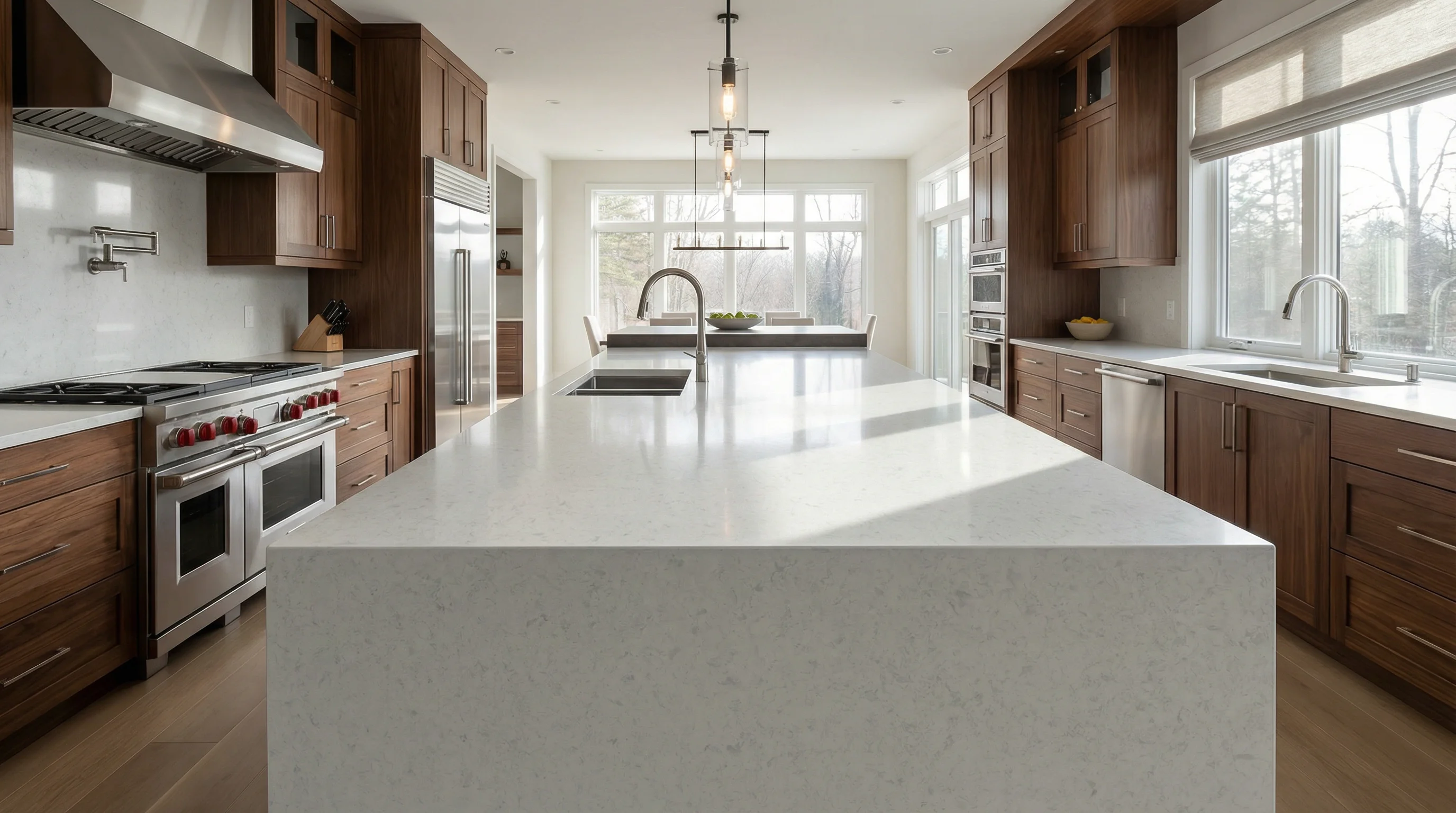Эта поверхность воплощает гармонию света и формы. Тончайший узор из дымчатых вкраплений на белоснежном фоне создает эффект глубокого внутреннего объема и едва уловимого движения. При естественном освещении текстура раскрывается мягкими переходами, делая рабочую зону визуально легкой и одновременно фундаментальной.