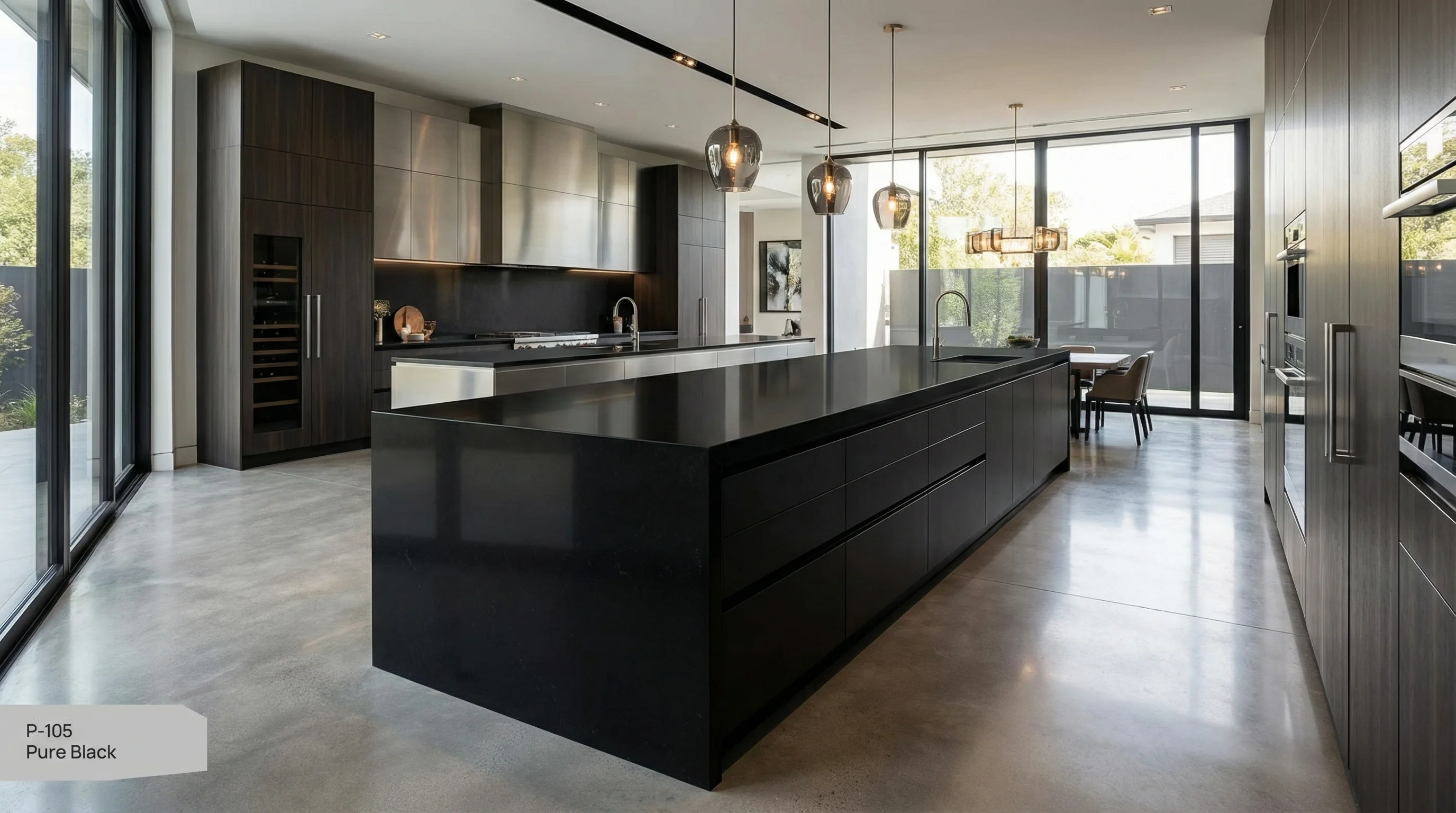 Это воплощение безупречного минимализма и концептуальной чистоты. Глубокий, монохромный оттенок без лишних включений создает эффект бесконечного пространства и визуальной тишины. Матовая или глянцевая текстура притягивает взгляд своей лаконичностью, превращая рабочую поверхность в центральный элемент архитектурного ансамбля вашего дома. Здесь нет места компромиссам — только чистая эстетика и уверенный характер.