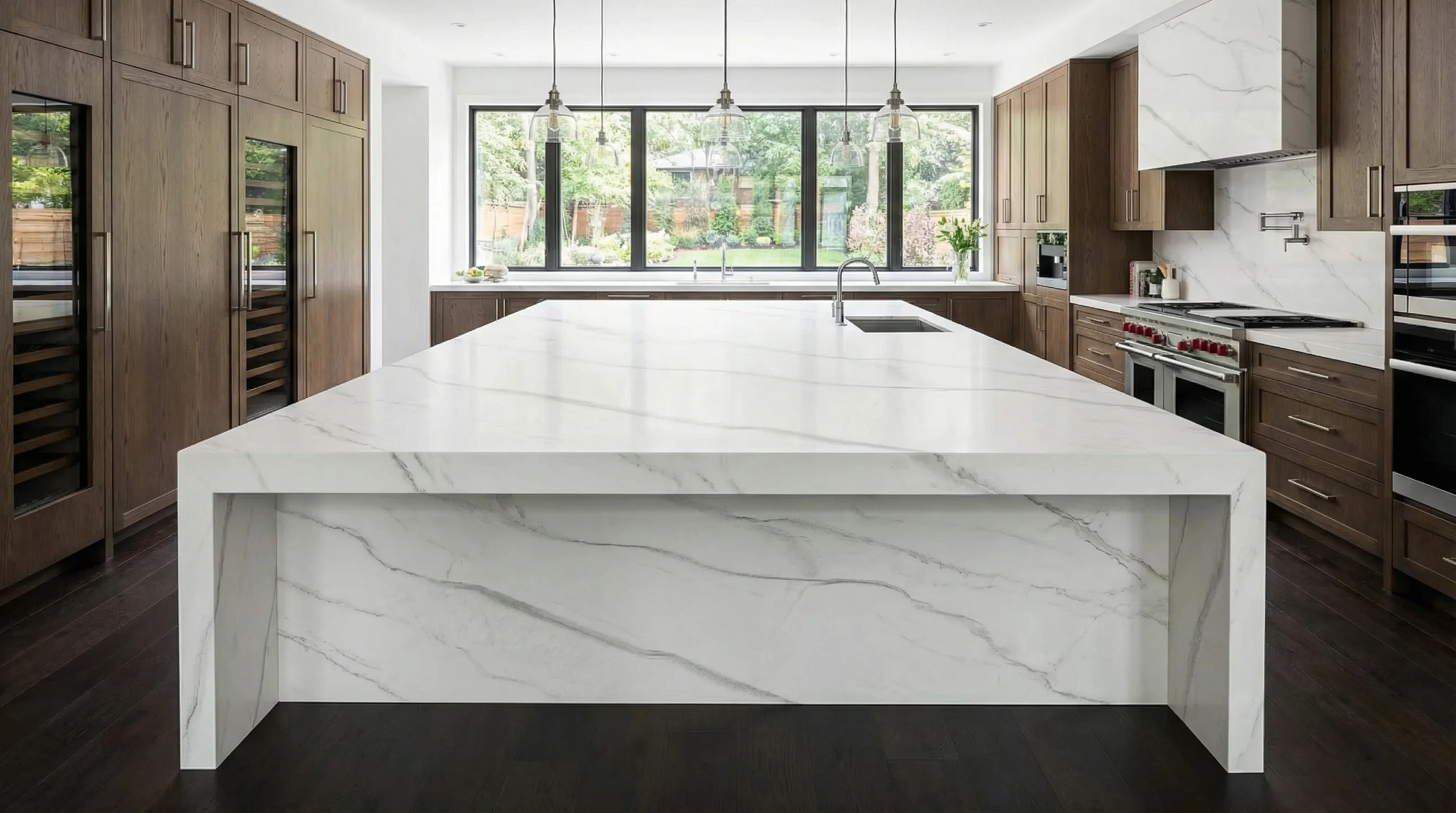 Такое решение становится главным визуальным акцентом пространства, превращая рабочую зону в образец современной роскоши. Благородство фактуры и выверенность каждой линии подчеркивают безупречный вкус владельца, наполняя дом атмосферой уверенного спокойствия и премиального комфорта.
