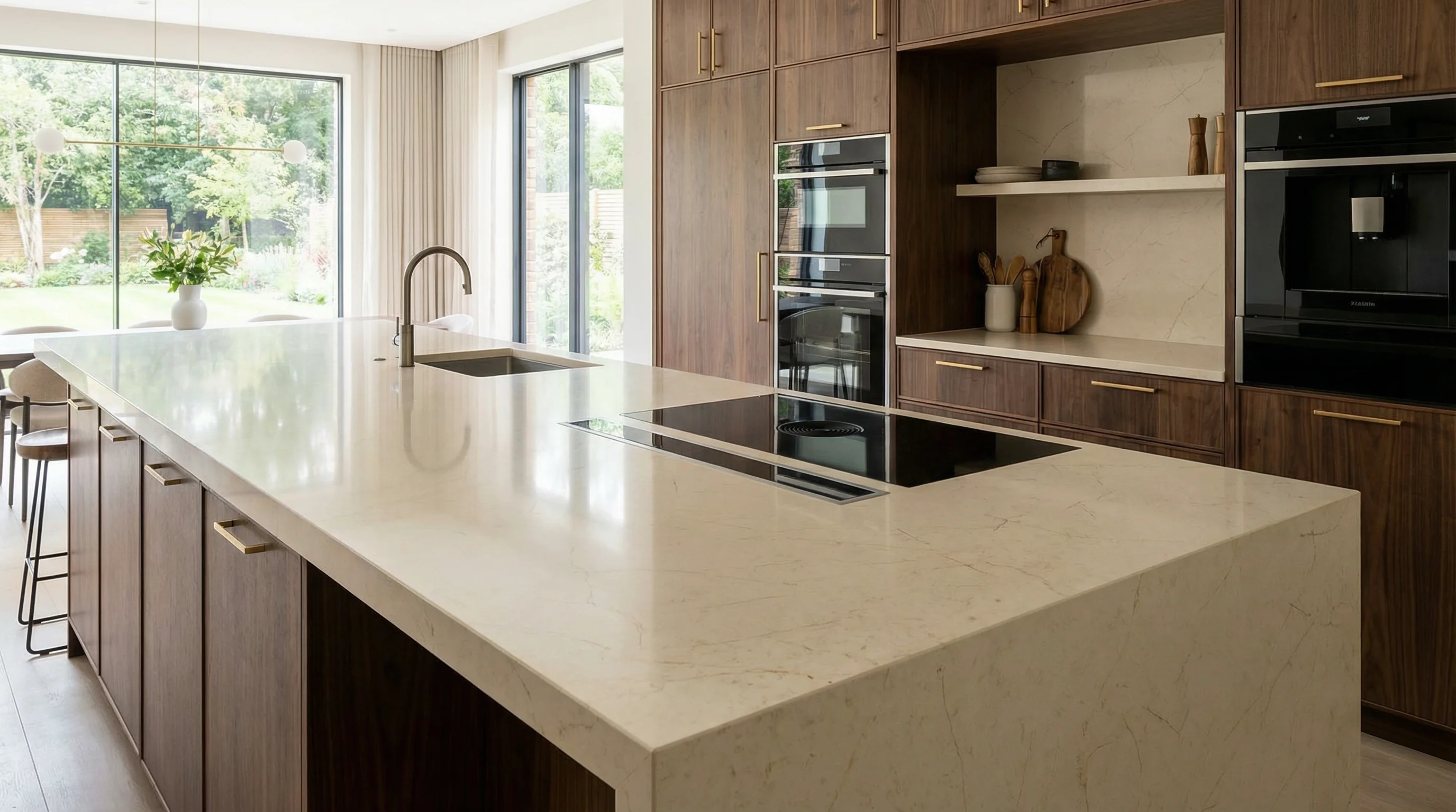 Выполненный из кварцевого агломерата премиум-класса, Элиодор обладает выдающимися эксплуатационными характеристиками. Он чрезвычайно устойчив к механическим повреждениям, высоким температурам и образованию пятен, что делает его идеальным выбором для рабочих поверхностей. Непористая структура материала гарантирует гигиеничность и легкость в уходе, позволяя сохранять его первозданный вид на долгие годы.
