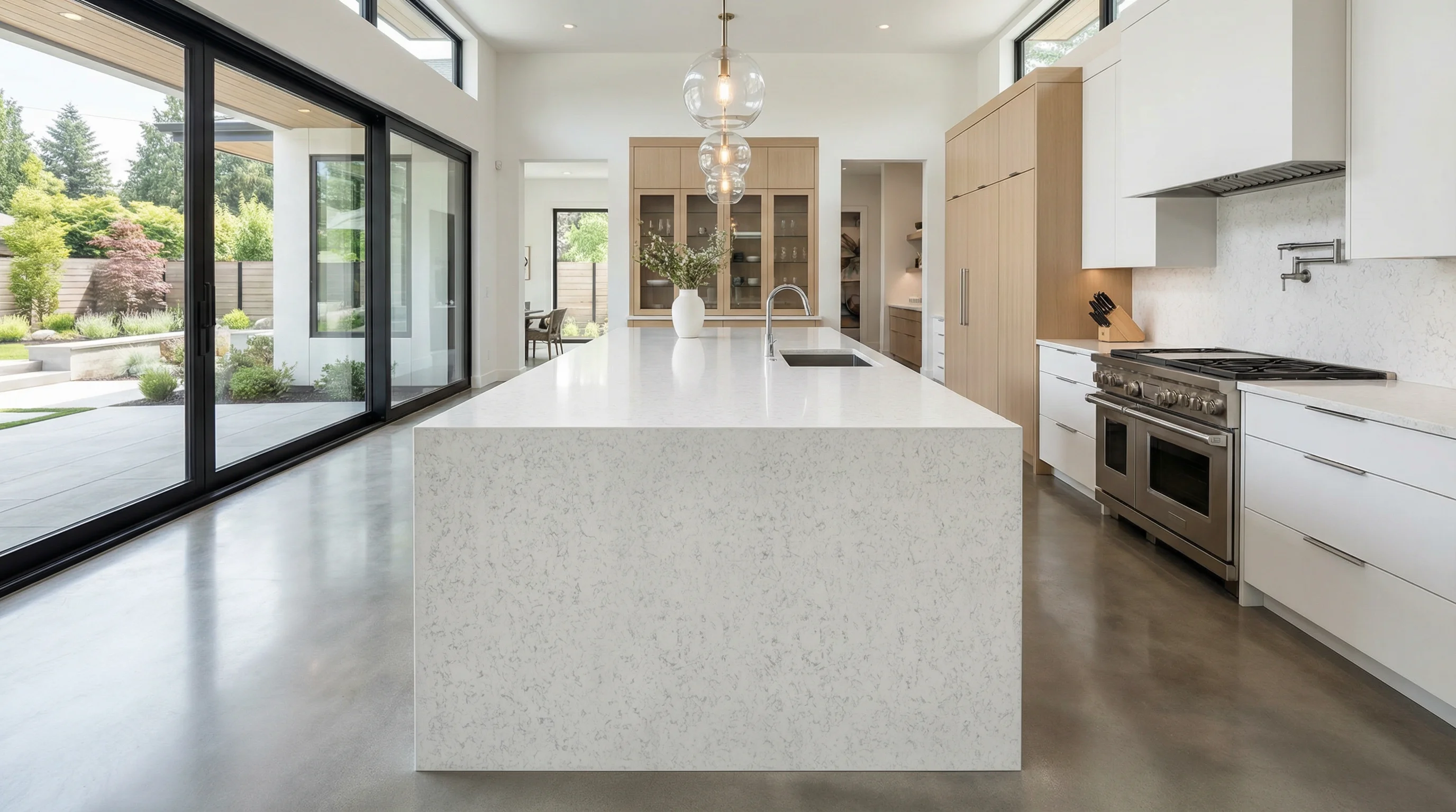 Эта изысканная поверхность — воплощение утонченной роскоши и современного дизайна. Нежный белый фон, пронизанный деликатным, едва уловимым серым узором, напоминает причудливые морозные узоры на стекле или легкие перистые облака. Этот материал наполняет пространство светом, визуально расширяя его и создавая ощущение безупречной чистоты и гармонии, становясь центральным элементом вашего интерьера.