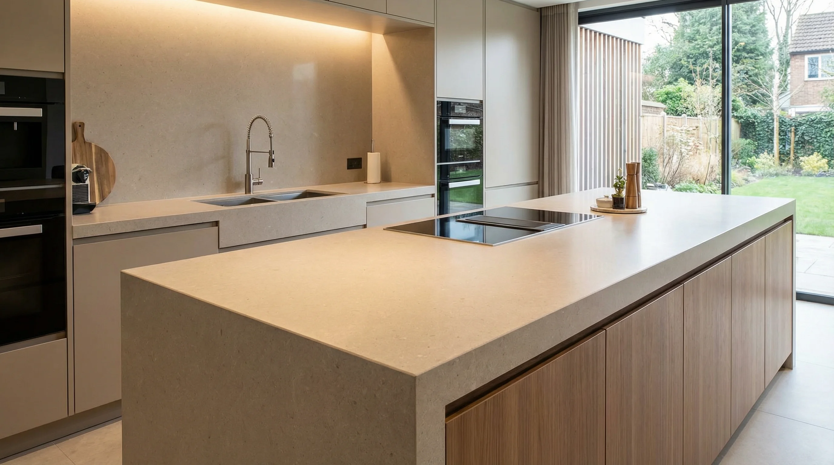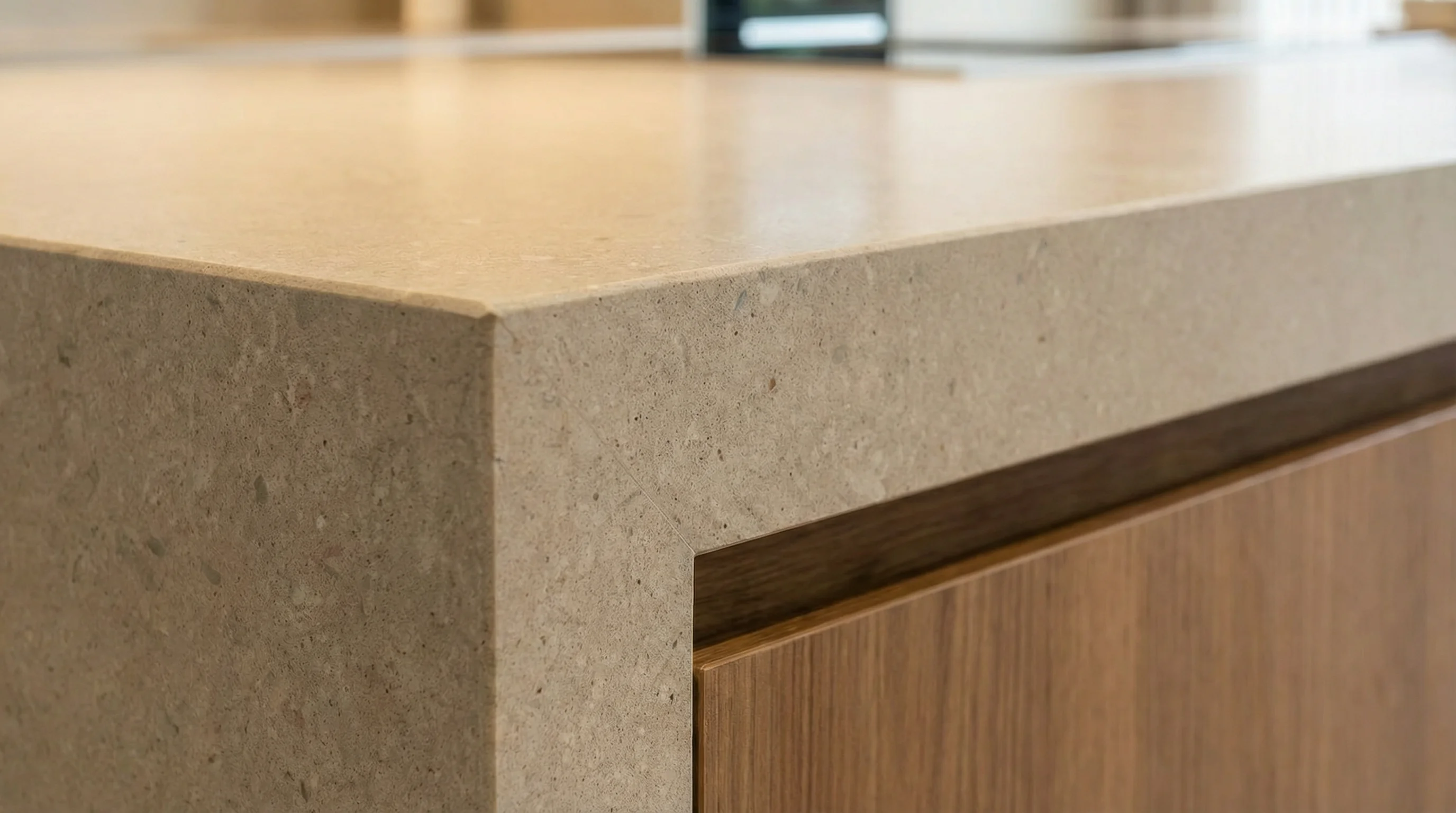 Столешница из кварцевого агломерата Galilea — это воплощение утонченной элегантности и безупречного качества для вашей кухни. Нежный бежевый оттенок, пронизанный мелкими темными вкраплениями, придает поверхности глубокую, натуральную текстуру, создавая атмосферу тепла и гармонии. Ее сдержанный дизайн идеально впишется в любой интерьер, от классического до современного, став его изысканным акцентом.