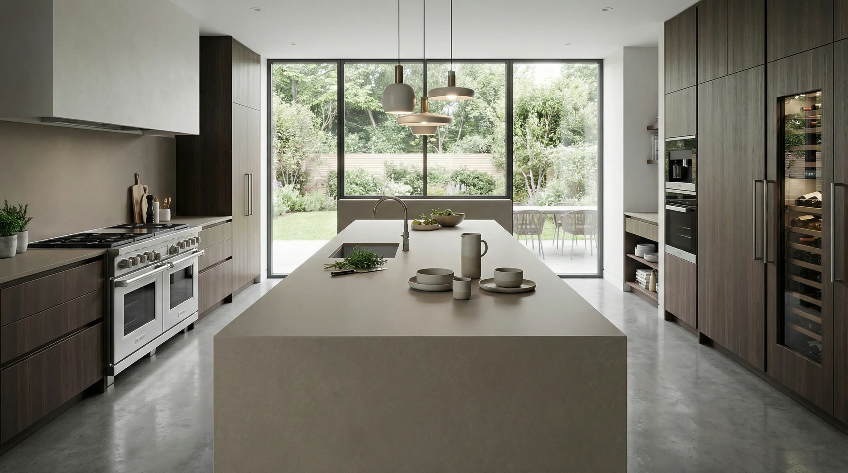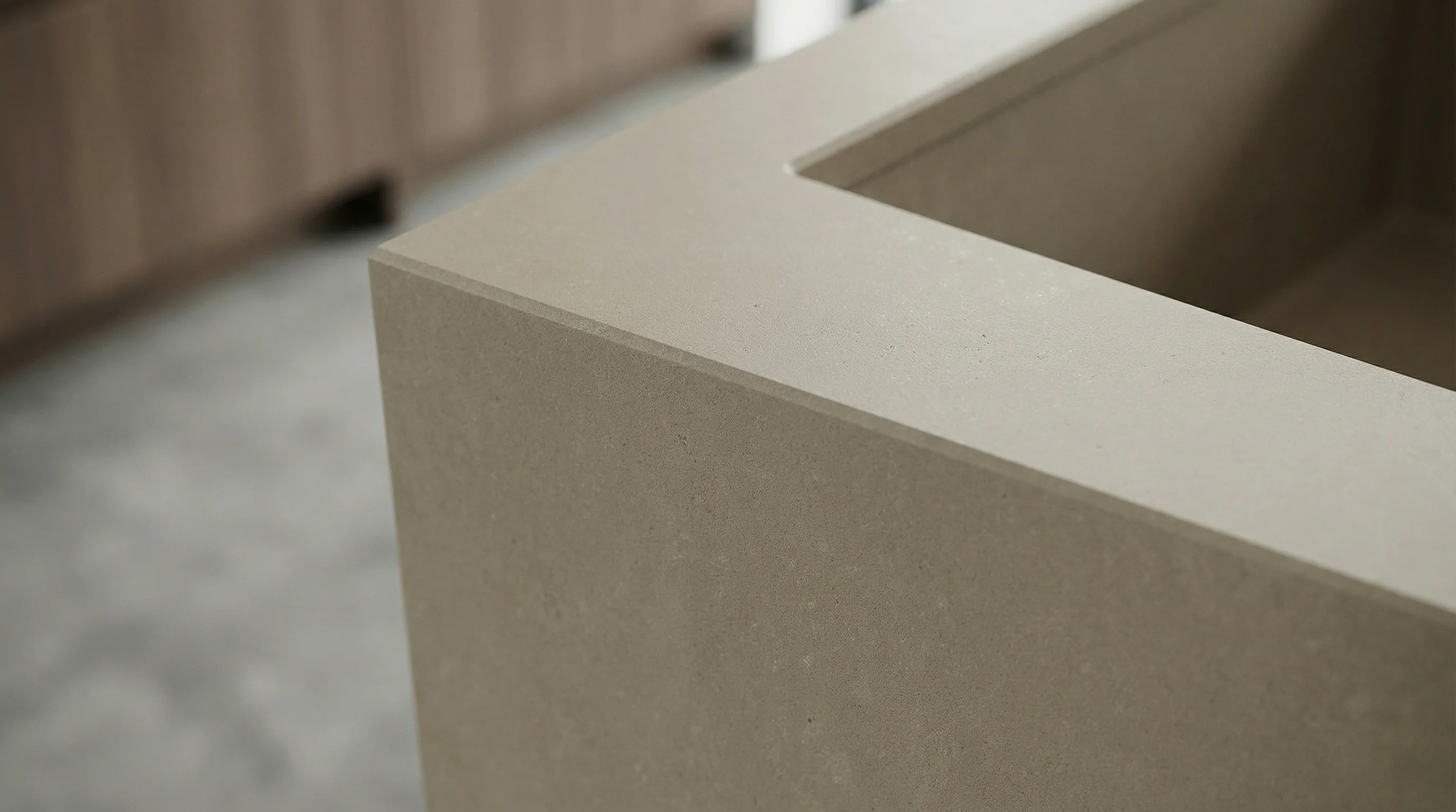 Эта изысканная поверхность станет центральным элементом современной кухни, привнося в пространство ощущение спокойствия и сдержанной роскоши. Благородный, равномерный оттенок припыленной земли обладает глубоким, теплым подтоном, который идеально сочетается как с натуральным деревом, так и с современными металлическими акцентами. Ее текстура ненавязчива и элегантна, подчеркивая безупречный вкус владельца и создавая атмосферу уюта и умиротворения.