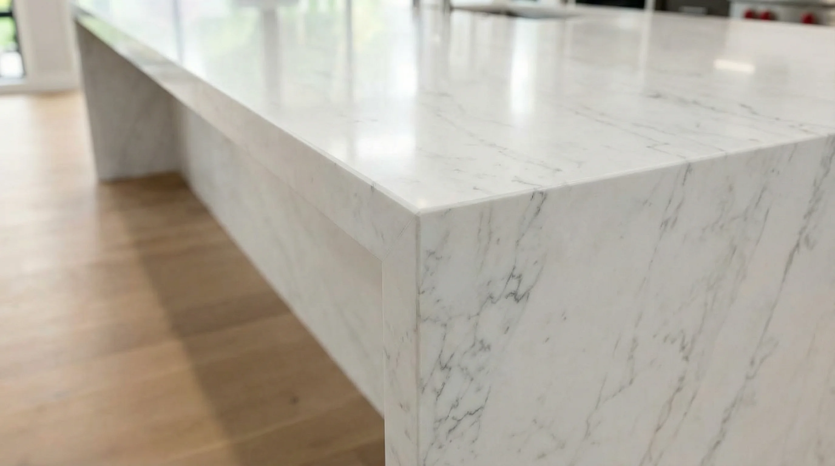 Чистота первозданного снега и мягкость предрассветных теней соединились в этой уникальной поверхности. Тонкие, едва уловимые нити дымчатых вкраплений плавно перетекают по белоснежному полотну, создавая визуальную глубину и эффект живого движения. Текстура притягивает взгляд, превращая рабочую зону в центральный элемент интерьера, наполненный светом и ощущением безграничного пространства.