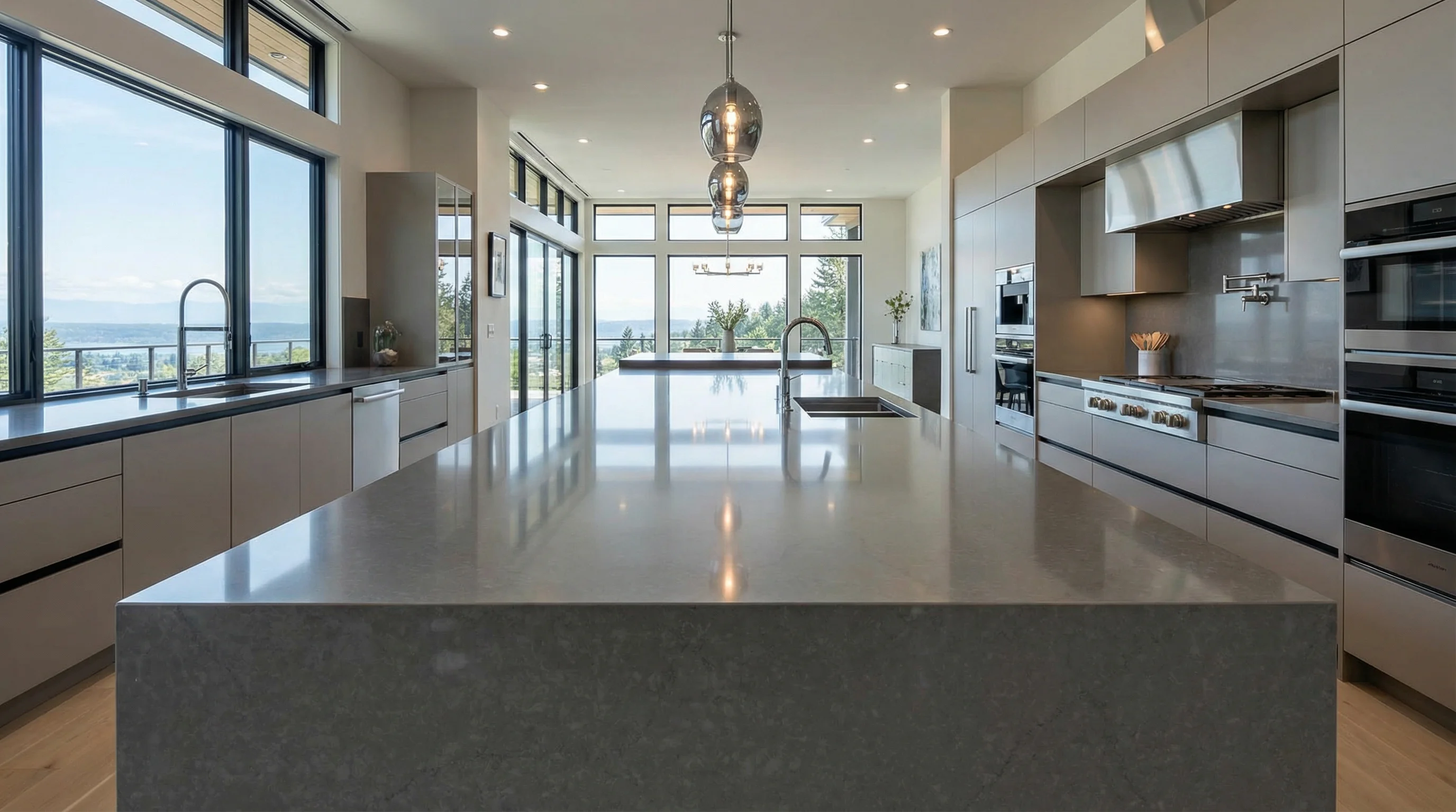 Эта изысканная столешница из кварцевого агломерата ASH PERLINO воплощает собой элегантность и современный стиль. Глубокий, насыщенный серый цвет с едва уловимыми белыми и дымчатыми прожилками создает визуальное ощущение мягкости и природной текстуры, напоминая натуральный бетон или вулканический камень. Этот декор станет идеальным акцентом в минималистичном или индустриальном интерьере, привнося нотку сдержанной роскоши и спокойствия.