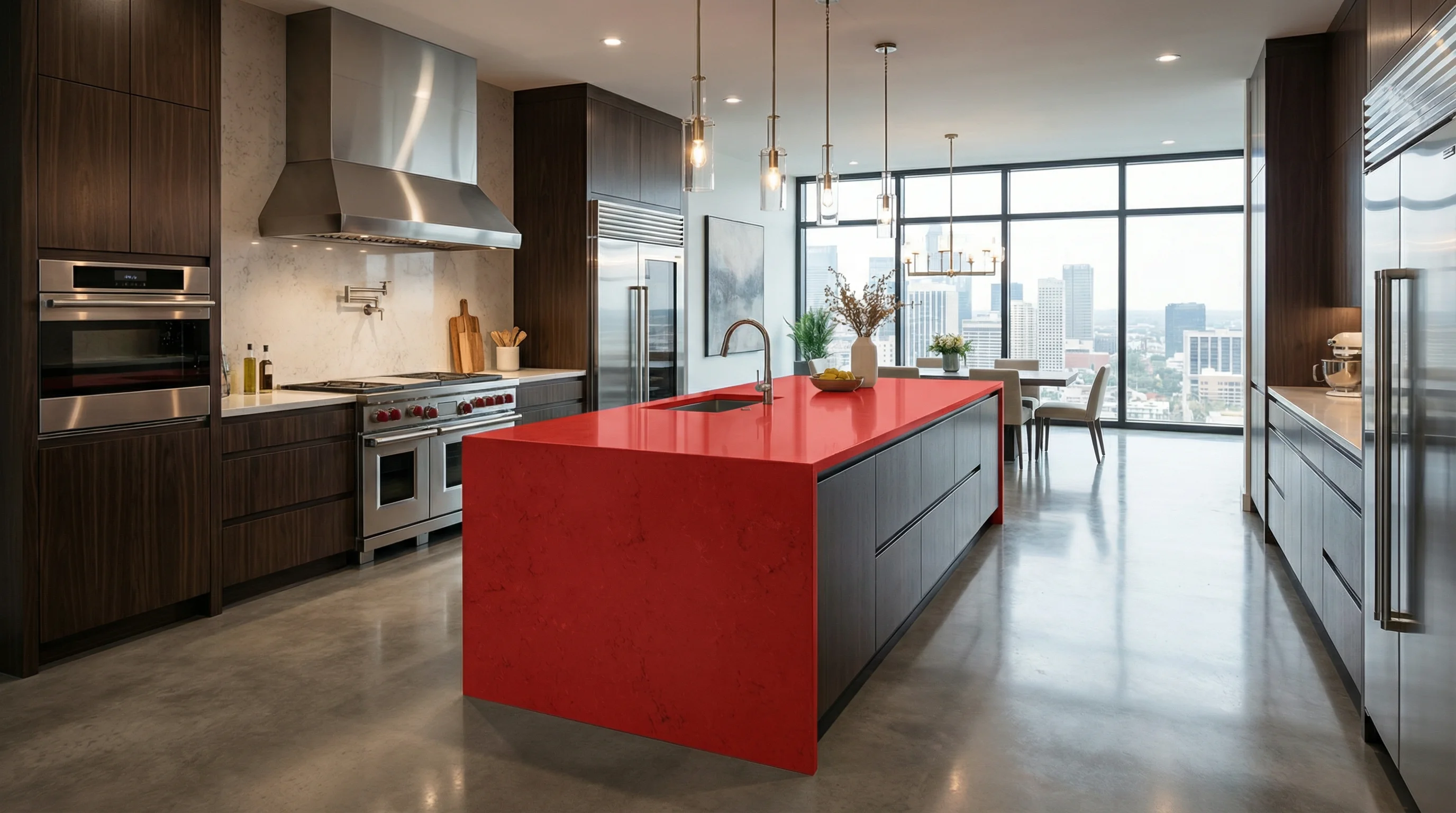 Этот премиальный камень создан для тех, кто не боится заявить о своем вкусе. Империал Руж – это больше, чем просто поверхность; это искусство, интегрированное в пространство вашей кухни, которое будет вдохновлять вас каждый день. Идеальный выбор для создания эксклюзивных островов или столешниц, которые останутся актуальными вне времени.