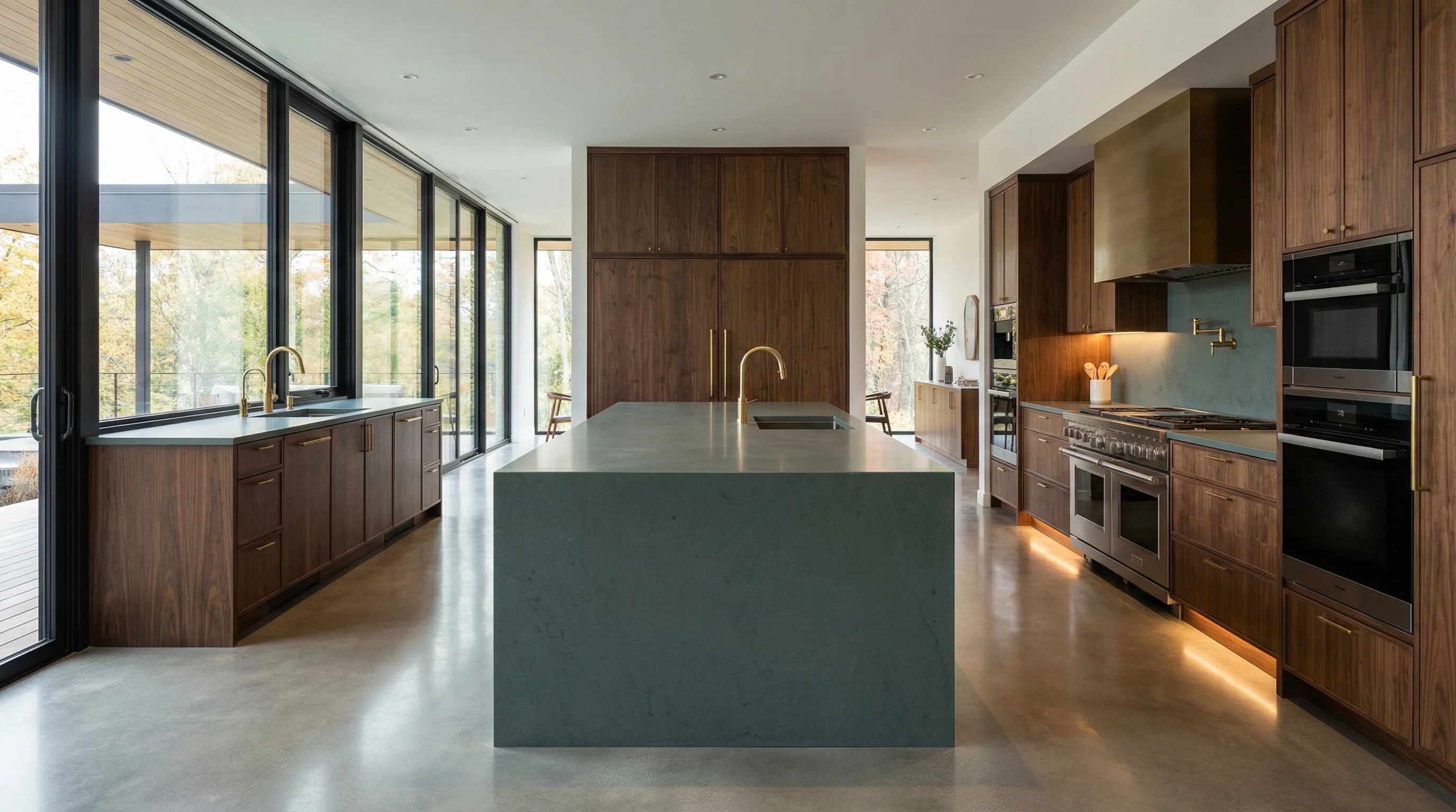 Это воплощение природного величия в современном интерьере. Насыщенный хвойный оттенок с мягким сатиновым финишем создает атмосферу умиротворения и глубокого комфорта. Поверхность притягивает взгляд своей глубиной, идеально сочетаясь как с теплыми текстурами натурального дерева, так и со строгим блеском латуни и металла.