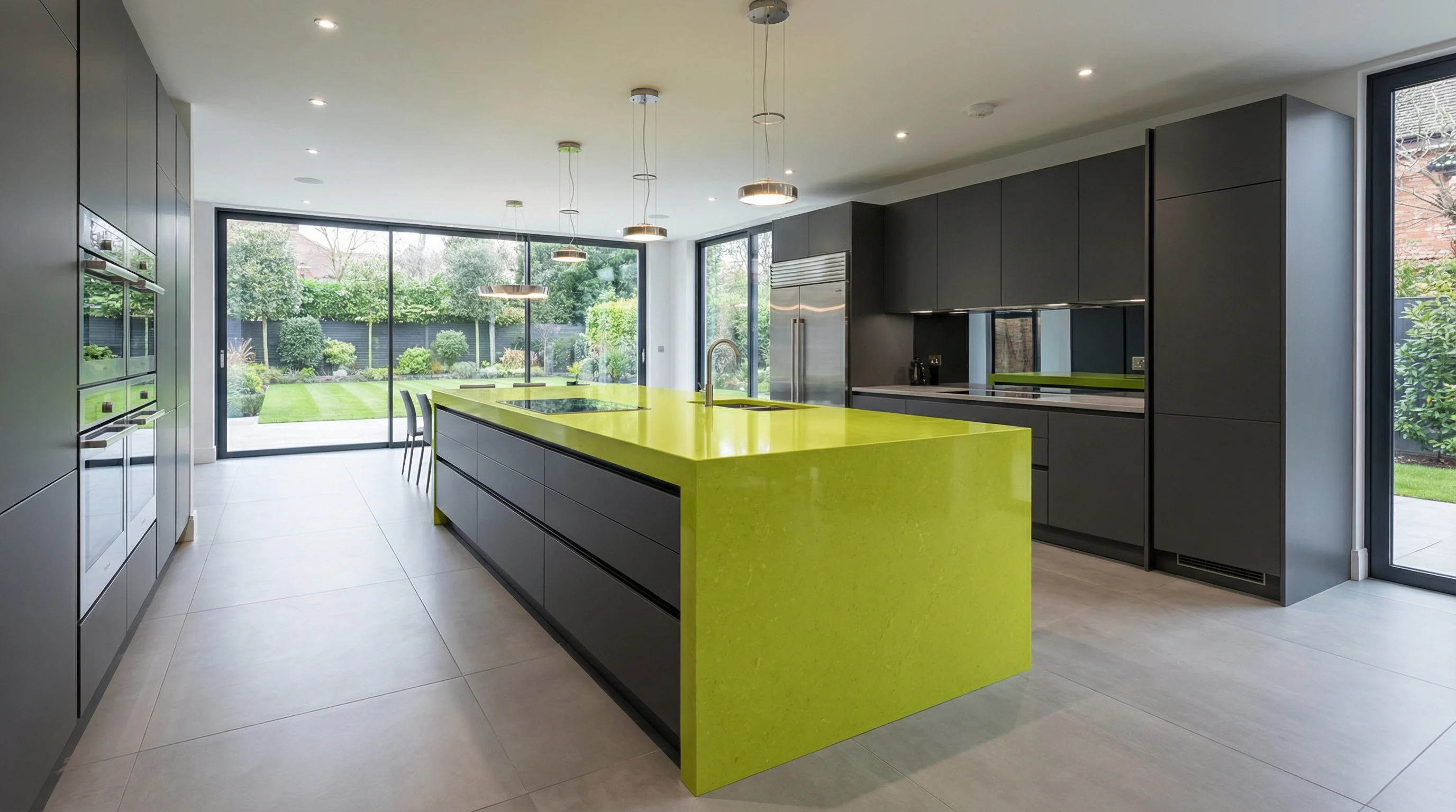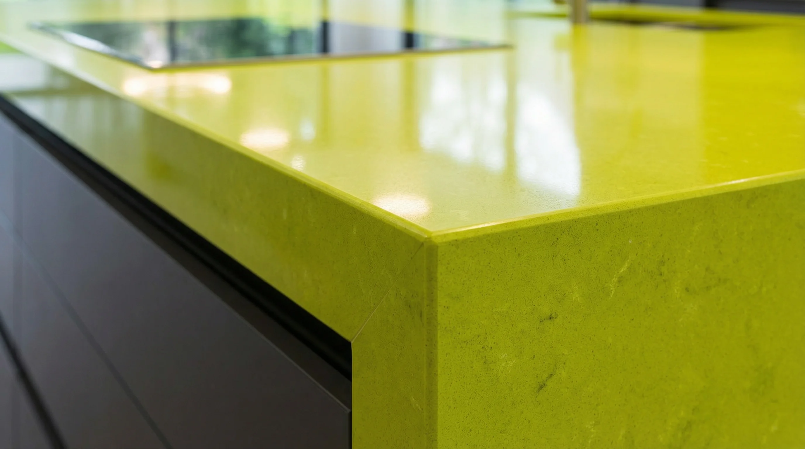 Эта впечатляющая рабочая поверхность выполнена в смелом и жизнеутверждающем оттенке зеленого лайма. Ее идеально гладкая, полированная фактура излучает свежесть и современную элегантность, мгновенно становясь главным акцентом кухонного пространства. Насыщенный, равномерный тон материала привносит яркую энергию в интерьер, создавая атмосферу эксклюзивной роскоши и безупречного вкуса.