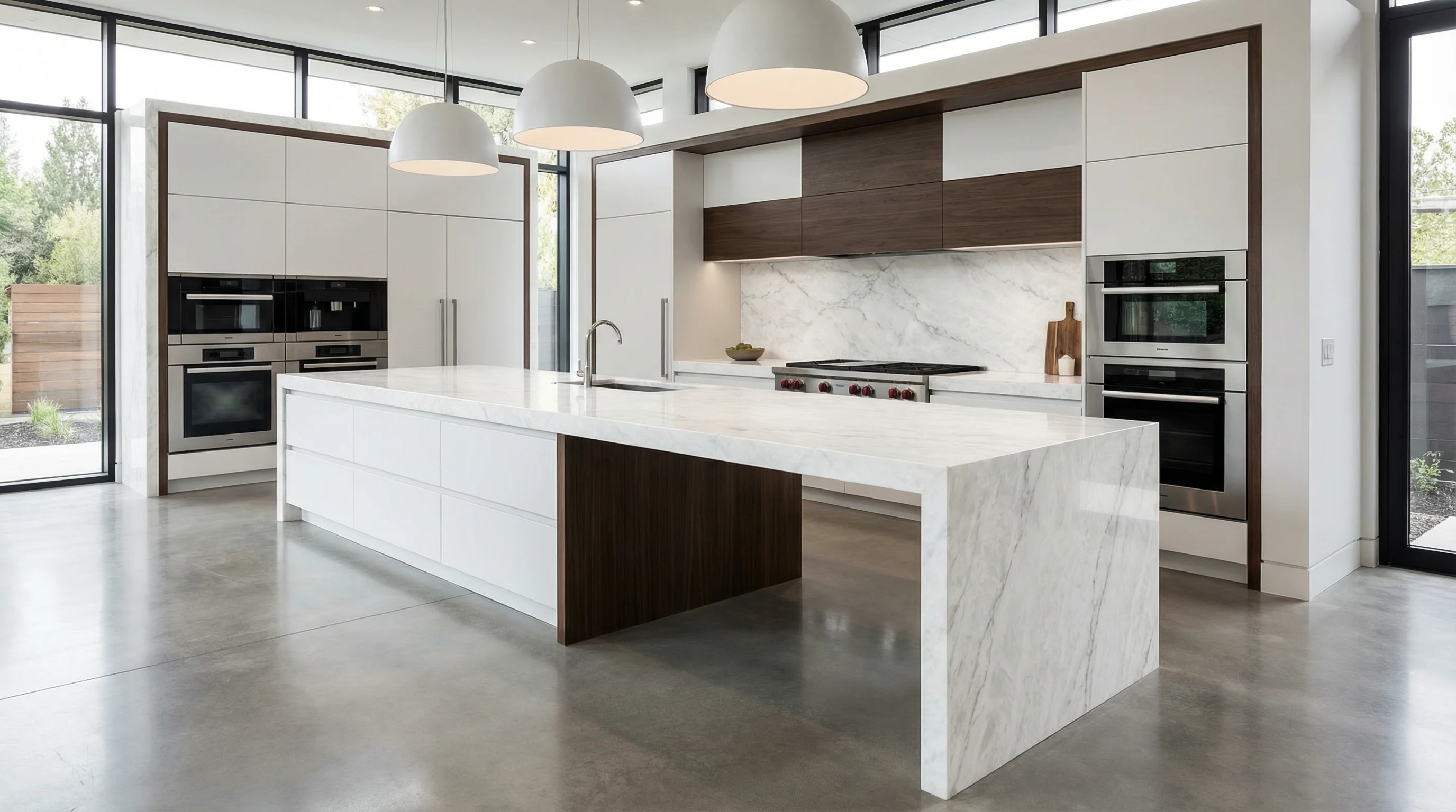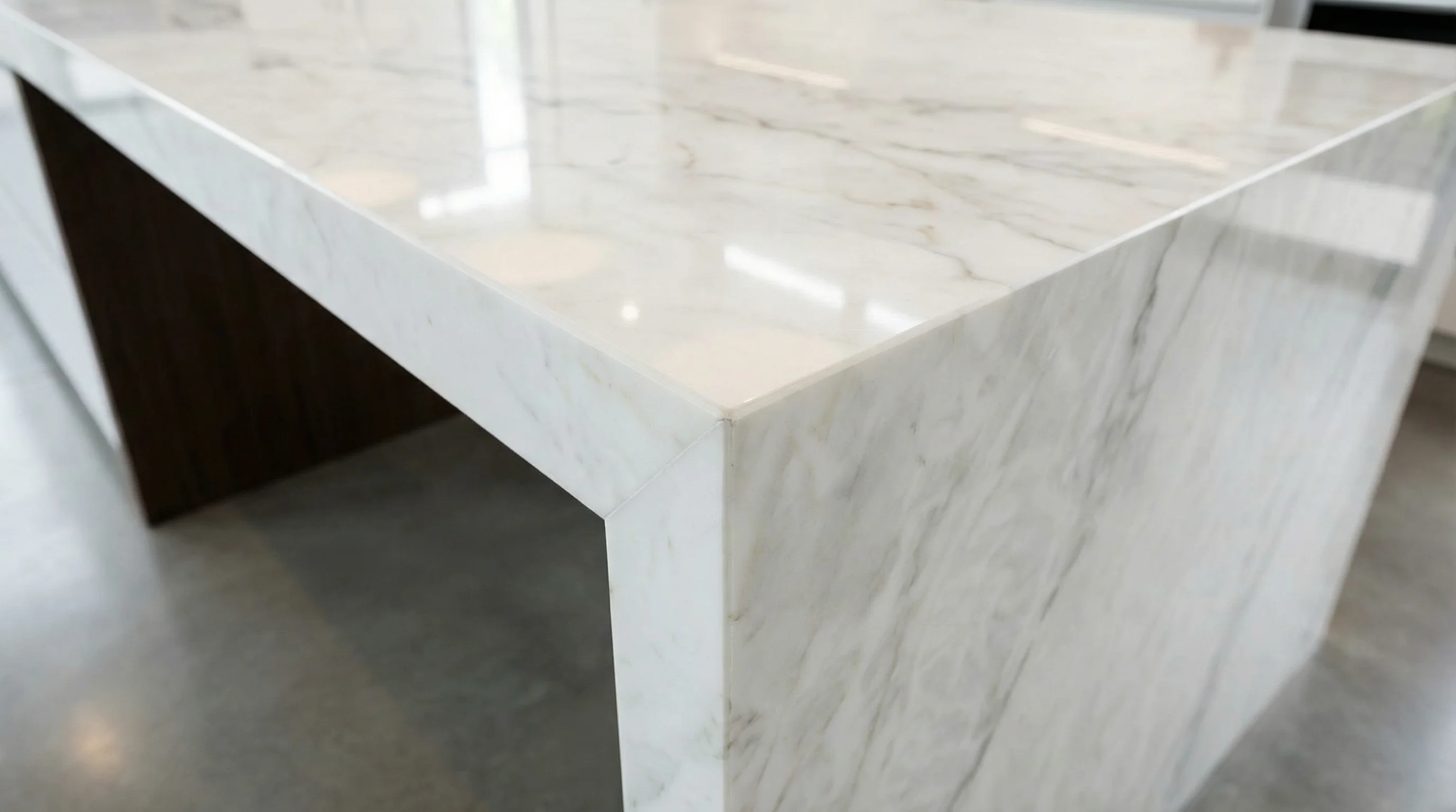 Это воплощение чистоты и природного благородства. Белоснежная основа, пронизанная тонкими дымчатыми жилами, создает уникальный эффект глубины и визуальной легкости. Поверхность словно излучает мягкий внутренний свет, превращая любое пространство в наполненную воздухом галерею современного искусства.