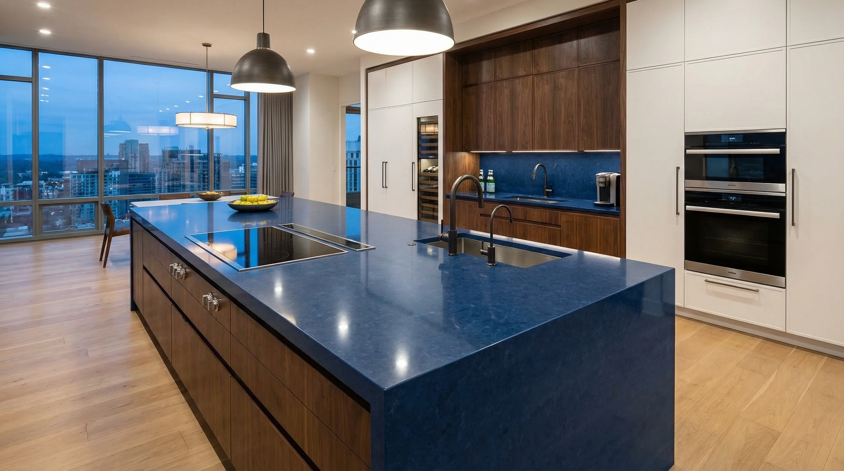 Эта поверхность завораживает своей глубиной, в которой словно застыли потоки океанской воды. Насыщенный синий оттенок с едва уловимыми переходами тона создает гипнотическое ощущение бесконечности и покоя. Изделие наполняет интерьер особой энергетикой, становясь выразительным акцентом, который притягивает взгляд и подчеркивает исключительный вкус владельца.