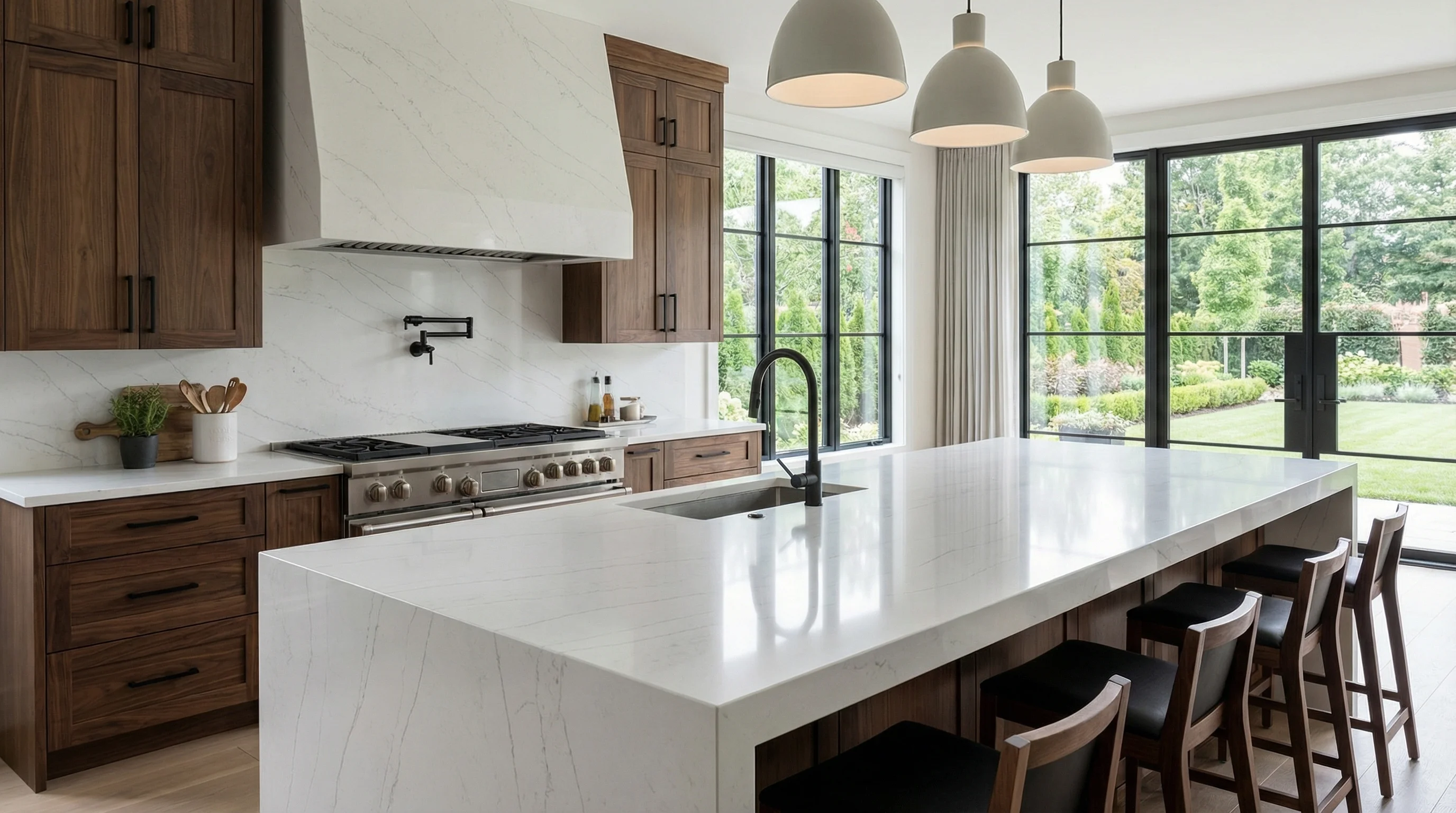 Ослепительно белое основание с изящным узором дымчатых жил создает в пространстве ощущение легкости и высокого стиля. Каждая линия уникальна, напоминая застывшую акварель или нежное дыхание весны, заключенное в совершенную форму. Глубина и чистота материала наполняют помещение мягким отраженным светом, визуально расширяя границы интерьера и превращая рабочую поверхность в художественный объект.