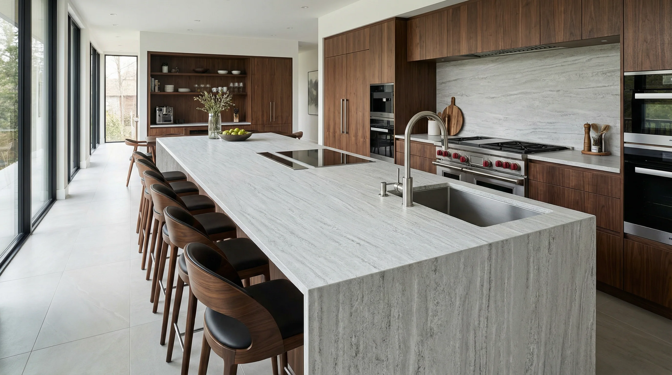За внешней утонченностью скрывается исключительная прочность и долговечность. Материал обладает высокой устойчивостью к термическим воздействиям и механическим повреждениям, сохраняя идеальную гладкость на протяжении десятилетий. Плотная структура исключает впитывание влаги и загрязнений, что делает его не только эстетически совершенным, но и максимально практичным решением для современной кухни.