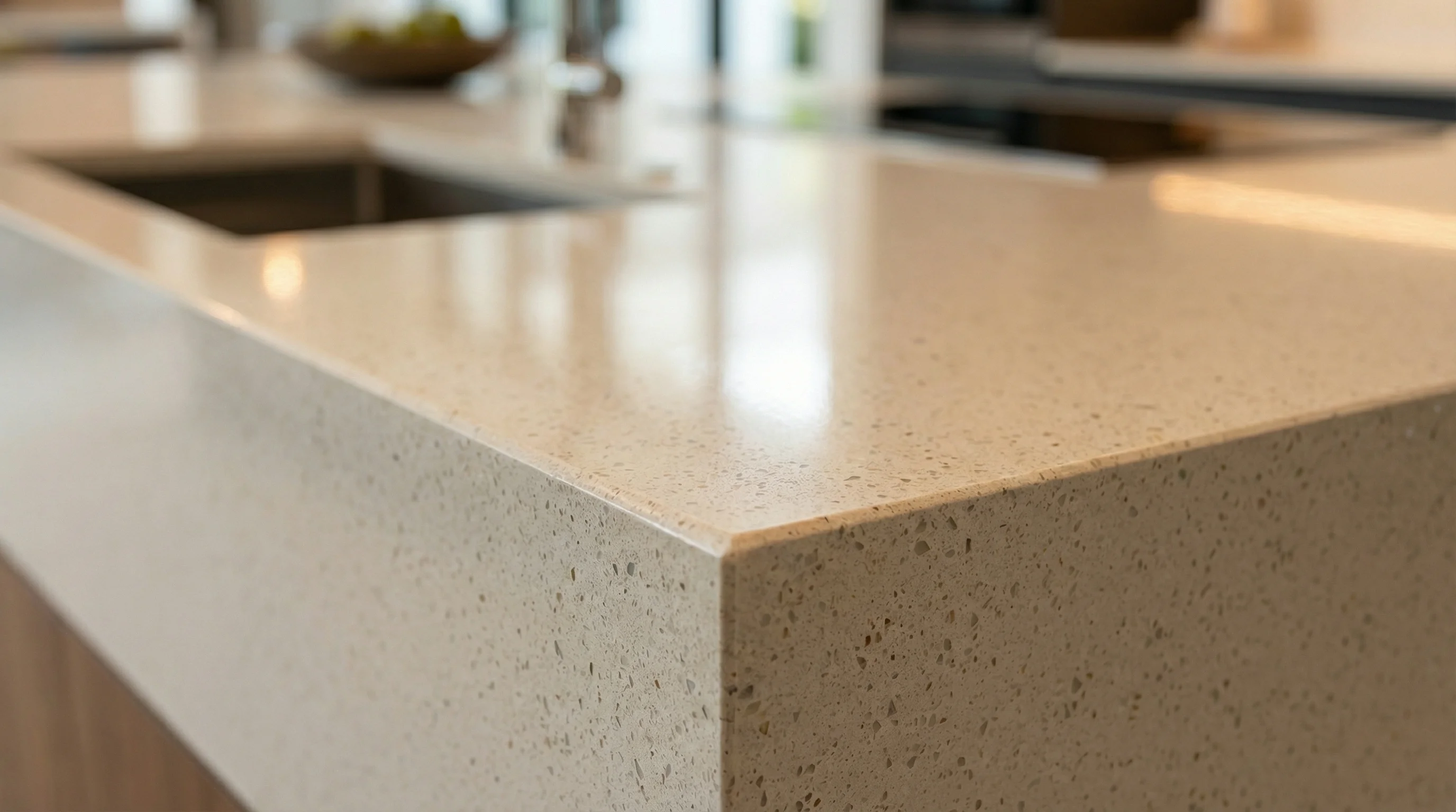 Поверхность этого изделия воплощает в себе эстетику безупречной чистоты и мягкого, обволакивающего сияния. Тонкая, едва уловимая зернистость фактуры напоминает нежные лепестки в лучах утреннего солнца, создавая в интерьере ощущение бесконечного пространства и визуальной легкости. Теплый сливочный оттенок с деликатными вкраплениями гармонично объединяет строгие линии современной кухни и природный уют.