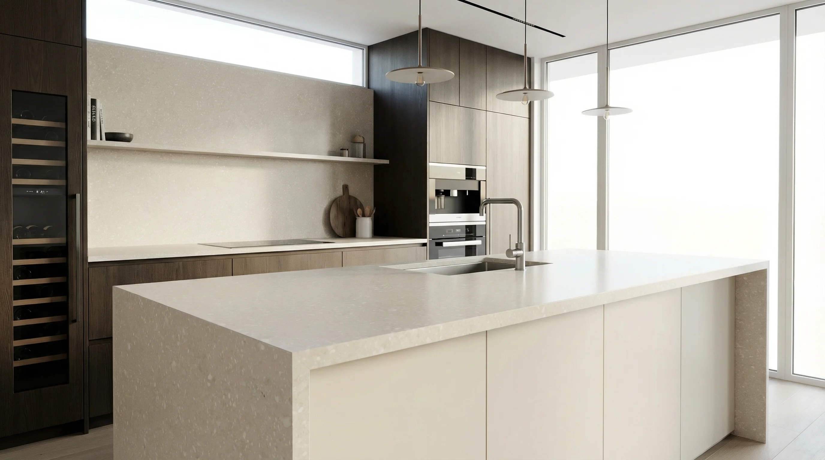 Откройте для себя воплощение спокойствия и изысканности с этой превосходной столешницей из камня, вдохновленного природной текстурой речной гальки. Ее поверхность, выполненная в мягких, нейтральных тонах, украшена тонкими вкраплениями и естественными узорами, создавая ощущение безмятежности и природной красоты. Каждый элемент этой поверхности рассказывает свою уникальную историю, придавая вашему пространству неповторимый характер.