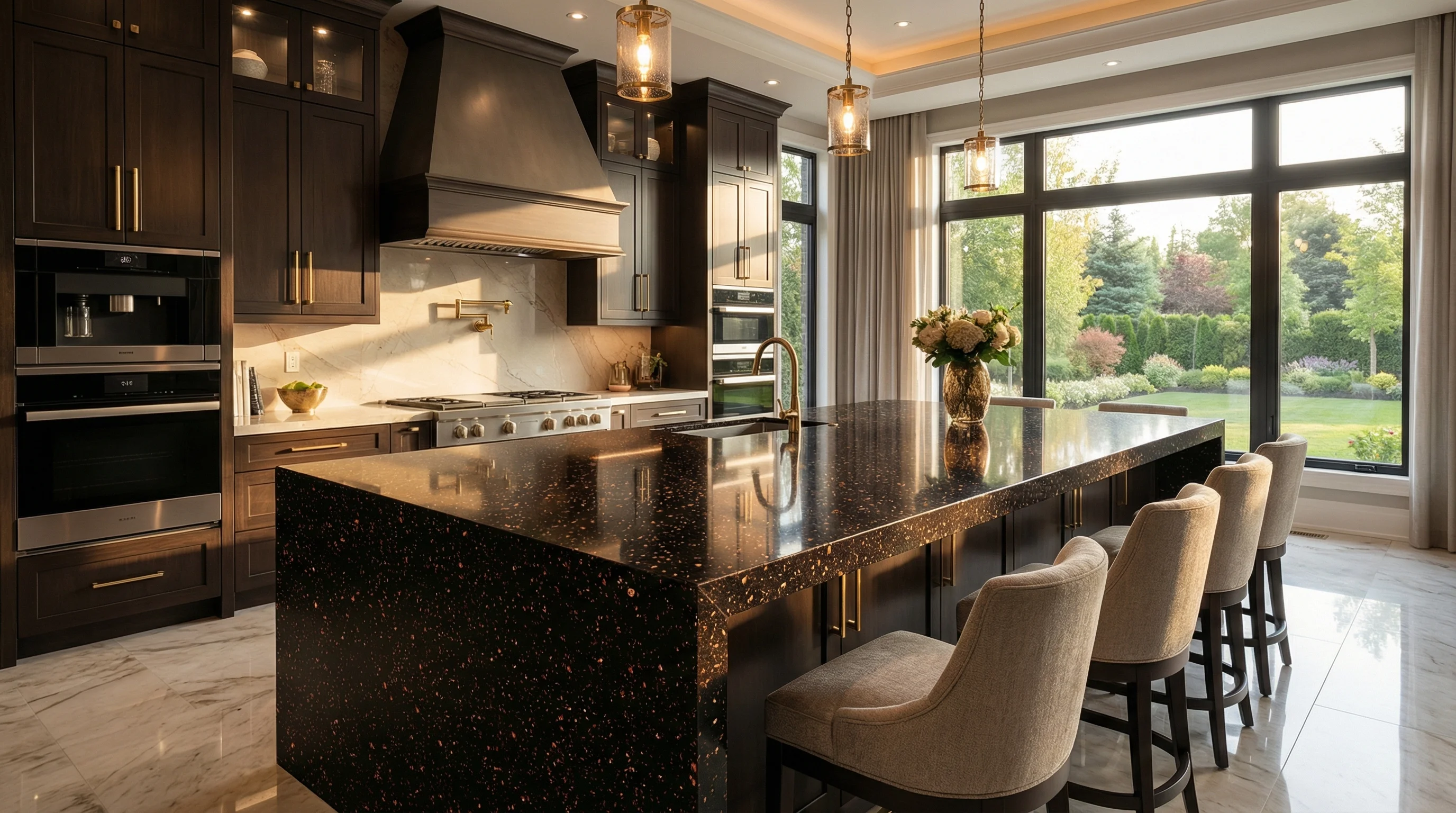 Этот продукт станет композиционным центром вашей кухни, объединяя роскошь и практичность в одном решении. Контрастная игра темного основания и золотистых элементов гармонирует с различными текстурами отделки — от натурального дерева до строгого металла. Создайте пространство, в которое хочется возвращаться за вдохновением и комфортом.
