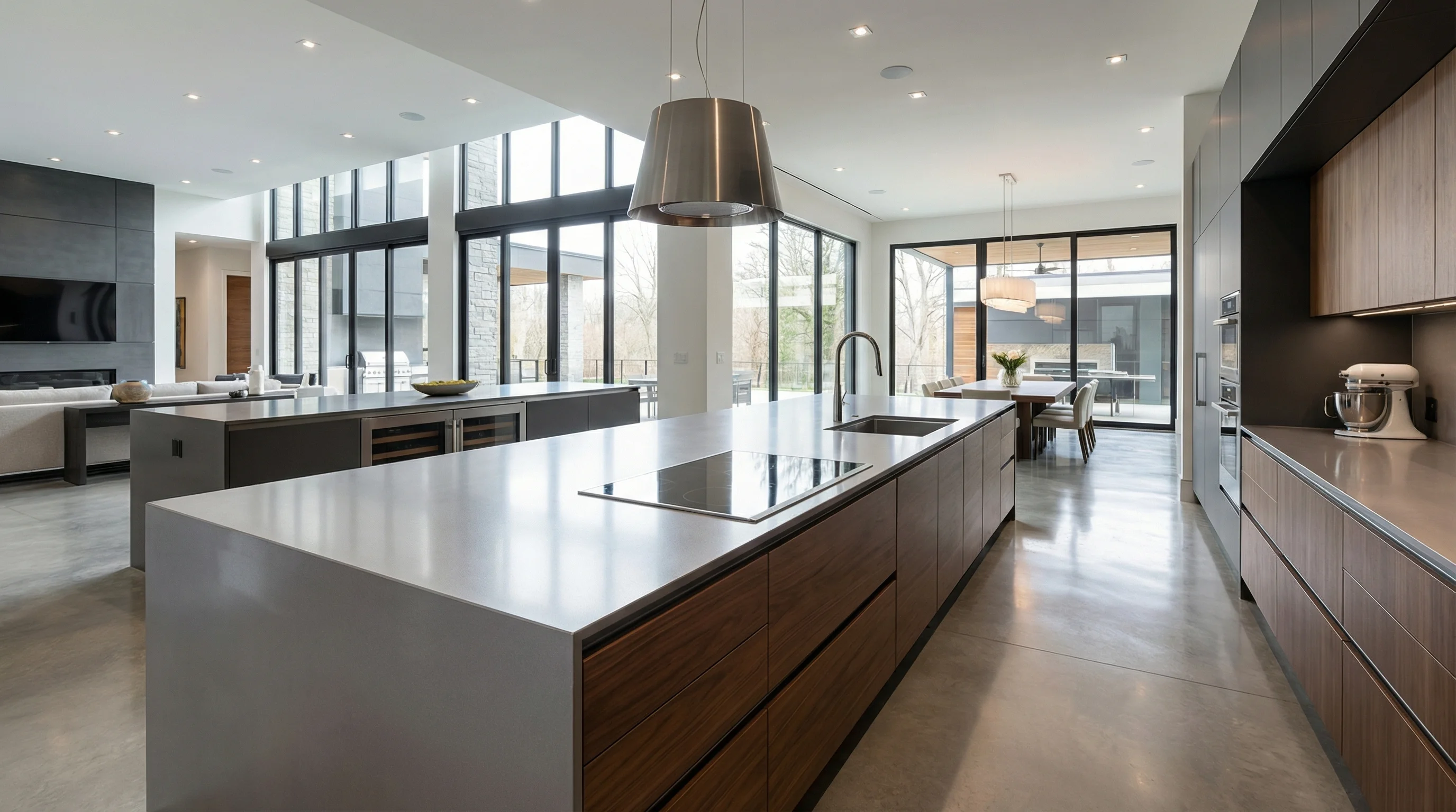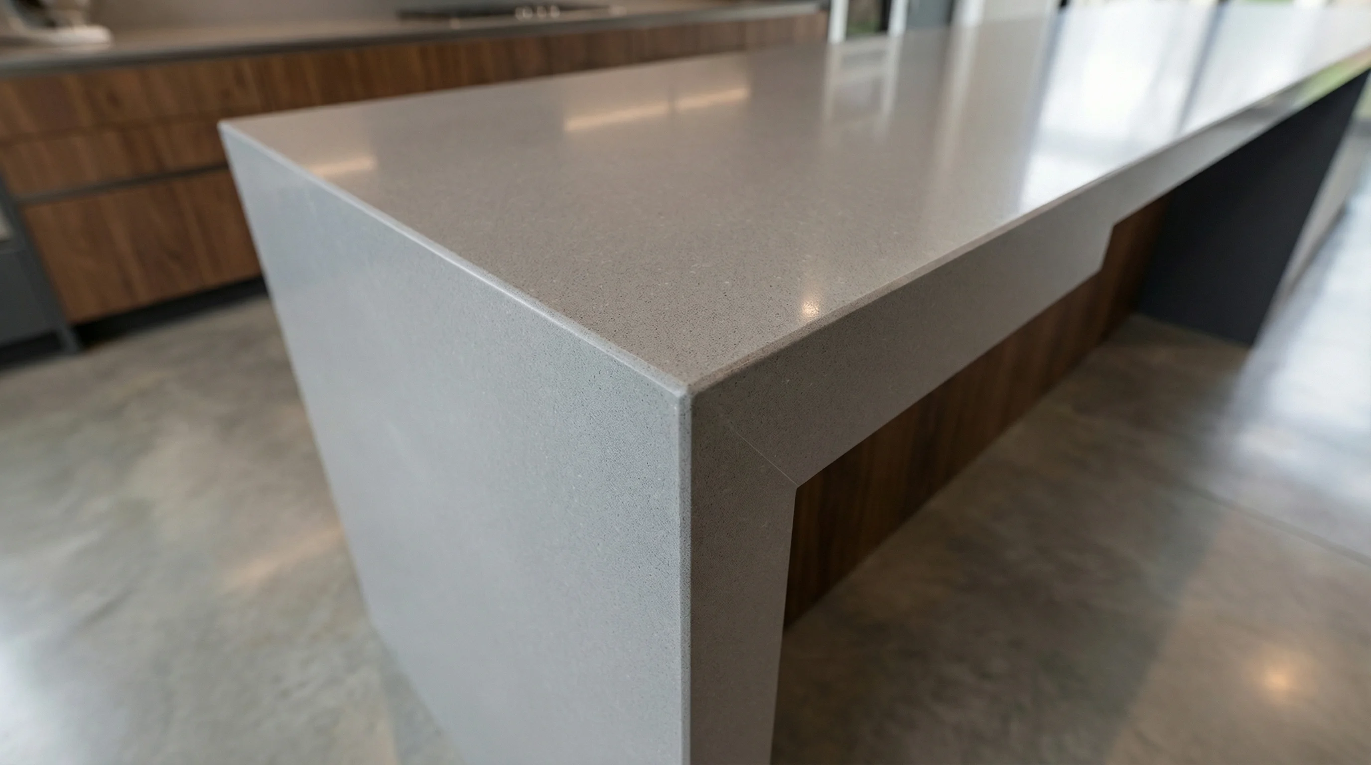 Это воплощение сдержанной роскоши и индустриального изящества. Глубокий, ровный серый оттенок поверхности создает идеальный визуальный баланс, становясь безупречным фоном как для технологичных кухонных аксессуаров, так и для теплых древесных фактур. Матовая текстура материала лишена навязчивого блеска, что позволяет наполнить интерьер ощущением спокойствия и профессионального подхода к дизайну.