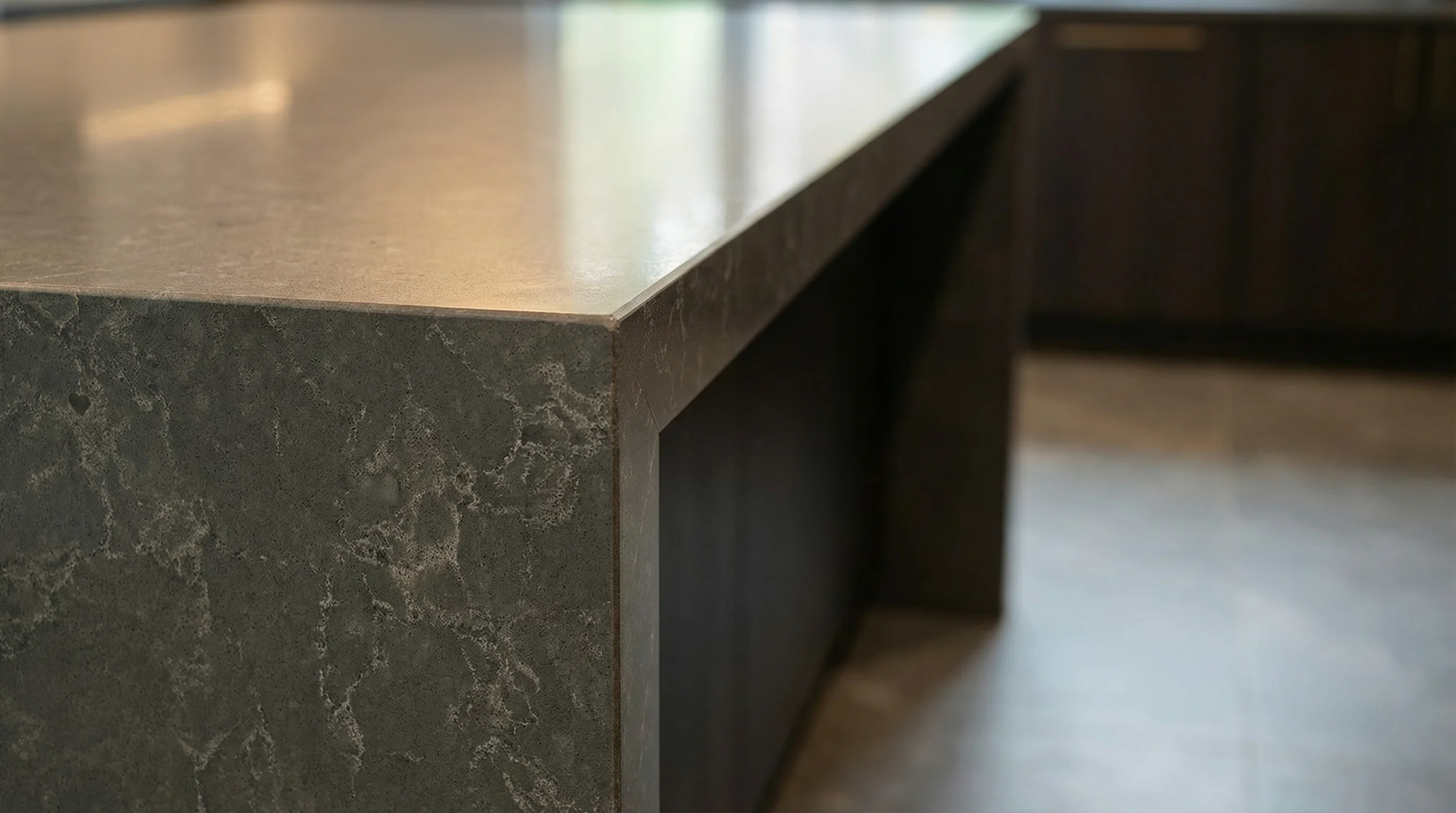 Глубокий серый оттенок поверхности вдохновлен спокойствием северных побережий, где небо сливается с океаном. Мягкие переходы цвета и тонкая сеть светлых прожилок создают эффект живой, дышащей текстуры, которая придает пространству особый объем. Матовая фактура материала не только приятна на ощупь, но и виртуозно поглощает лишние блики, подчеркивая строгую элегантность современного интерьера.