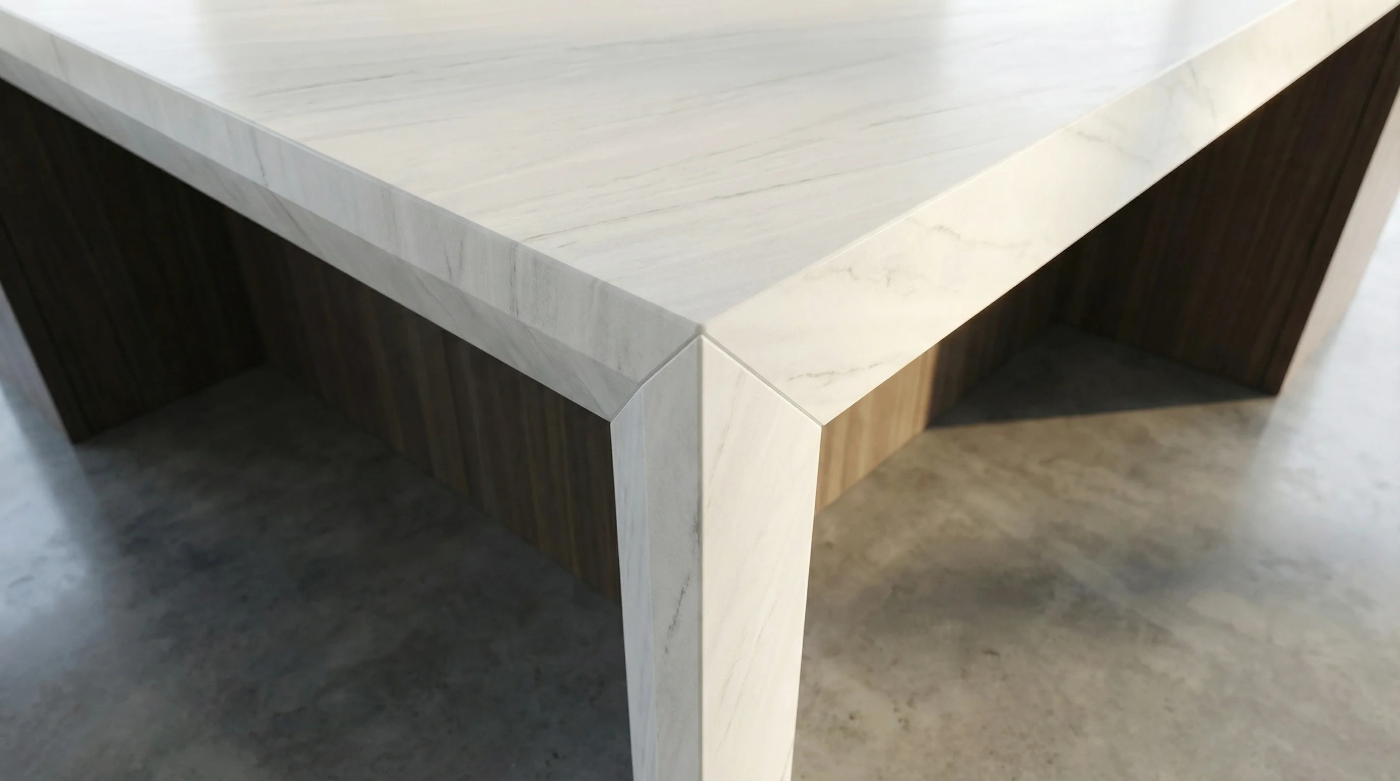 Этот материал воплощает в себе первозданную чистоту и спокойствие, напоминая легкую дымку предрассветного неба. Глубокий молочно-белый оттенок служит идеальным фоном для мягких, струящихся серых прожилок, которые создают неповторимый динамичный рисунок. Текстура поверхности приглашает к прикосновению, наполняя интерьер ощущением воздушности, чистоты и безграничного пространства.