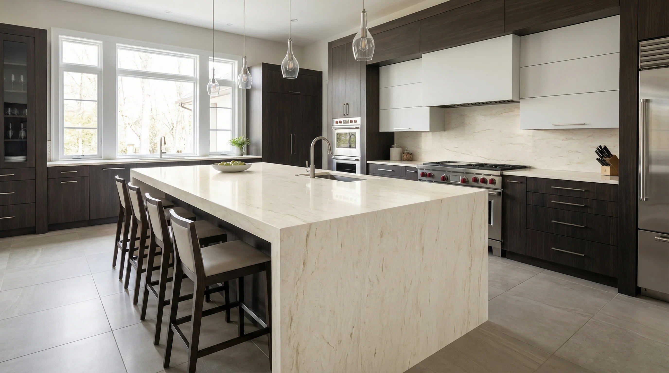 Этот материал — истинное воплощение природной грации и легкости. Благородная молочная поверхность пронизана мягкими, едва уловимыми нитями дымчатых вен, которые воссоздают эффект плывущих по утреннему небу перистых облаков. Тонкая игра текстуры наполняет пространство светом и воздухом, создавая атмосферу умиротворенной роскоши и безупречного стиля.