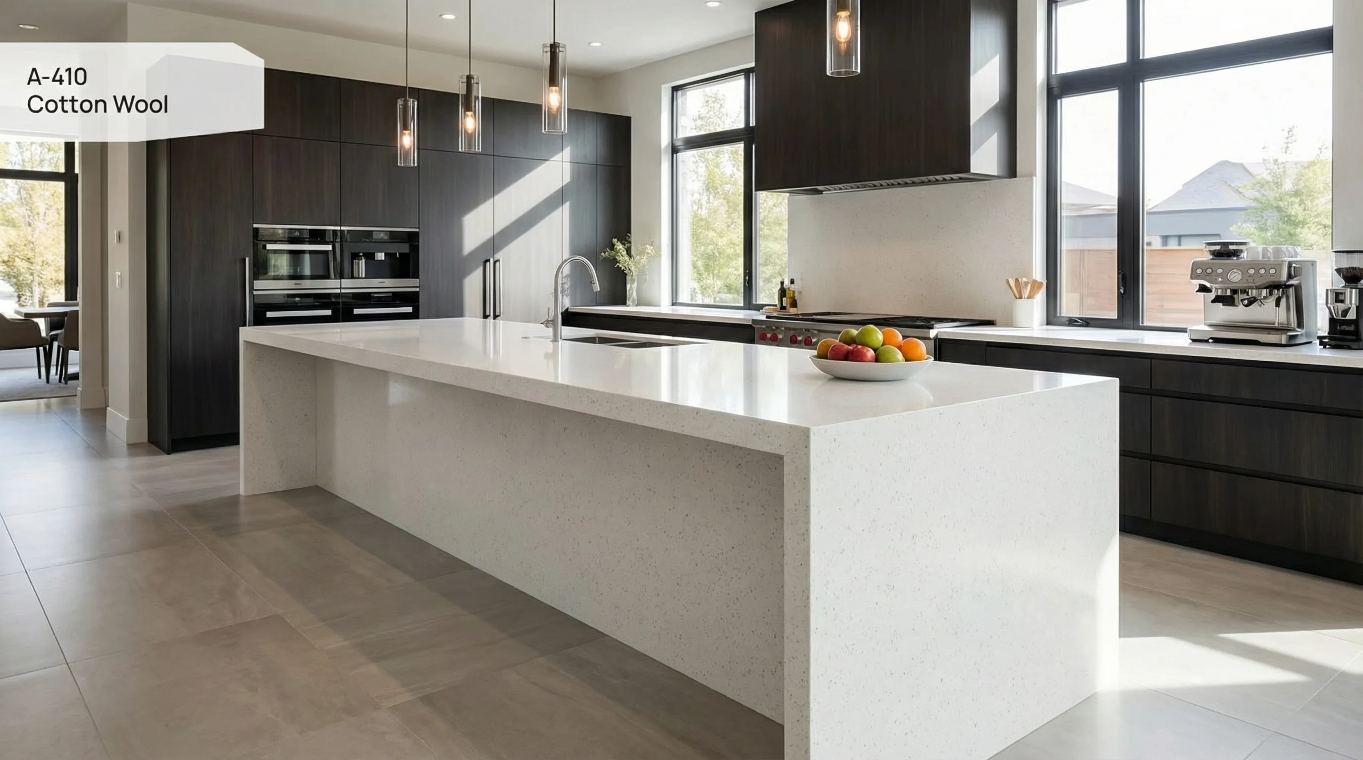 Этот материал воплощает в себе эстетику безупречной чистоты и мягкого уюта. Светлая основа с деликатной, едва уловимой текстурой создает ощущение легкости и наполняет интерьер дополнительным светом. Визуальная глубина поверхности напоминает мягкое прикосновение благородной ткани, гармонично сочетая в себе природную естественность и современный минимализм. Это идеальное решение для пространств, где роскошь проявляется в деталях и спокойном благородстве линий.