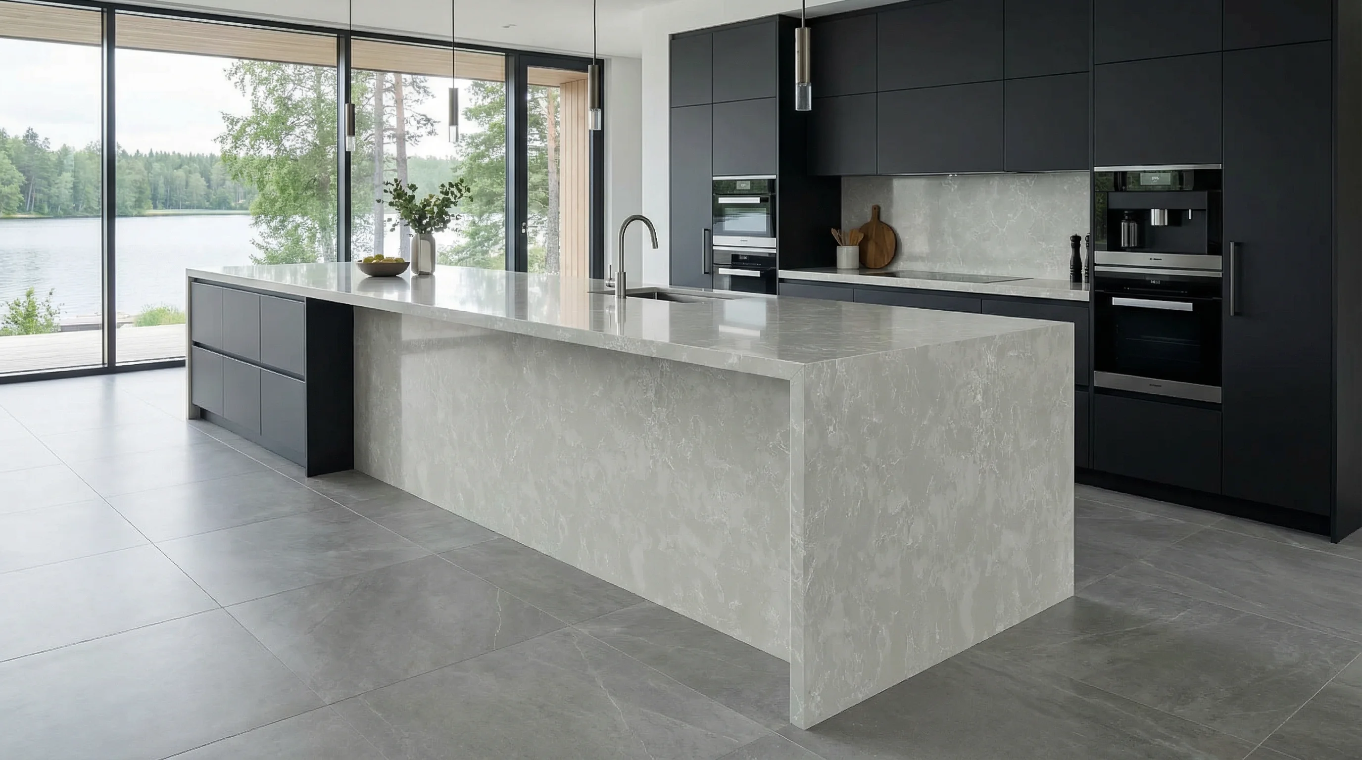 Легкость и визуальная чистота этого материала позволяют ему гармонично вписаться в самые современные дизайнерские проекты — от минимализма до неоклассики. Столешница с такой текстурой становится не просто функциональным элементом, а центральным арт-объектом пространства, подчеркивающим высокий статус и безупречный вкус владельца.