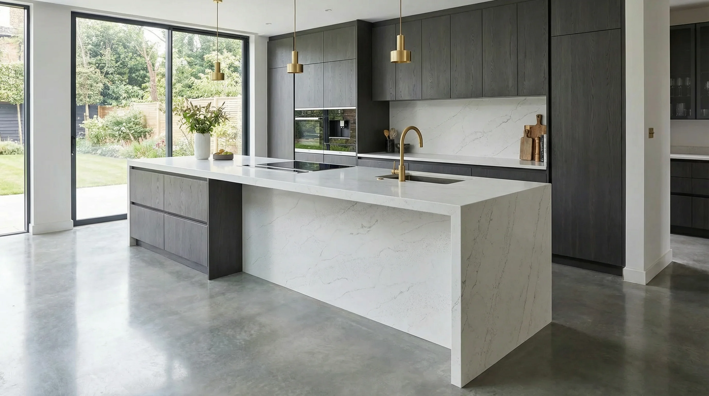 В основе этого решения лежит чистота цвета и филигранная проработка каждой детали. Поверхность завораживает деликатной игрой светлых оттенков, сквозь которые проступают тонкие, словно едва уловимые росчерки дымчатых прожилок. Мягкое жемчужное сияние придает пространству визуальную глубину и аристократичное спокойствие, наполняя интерьер ощущением свежести и воздуха.