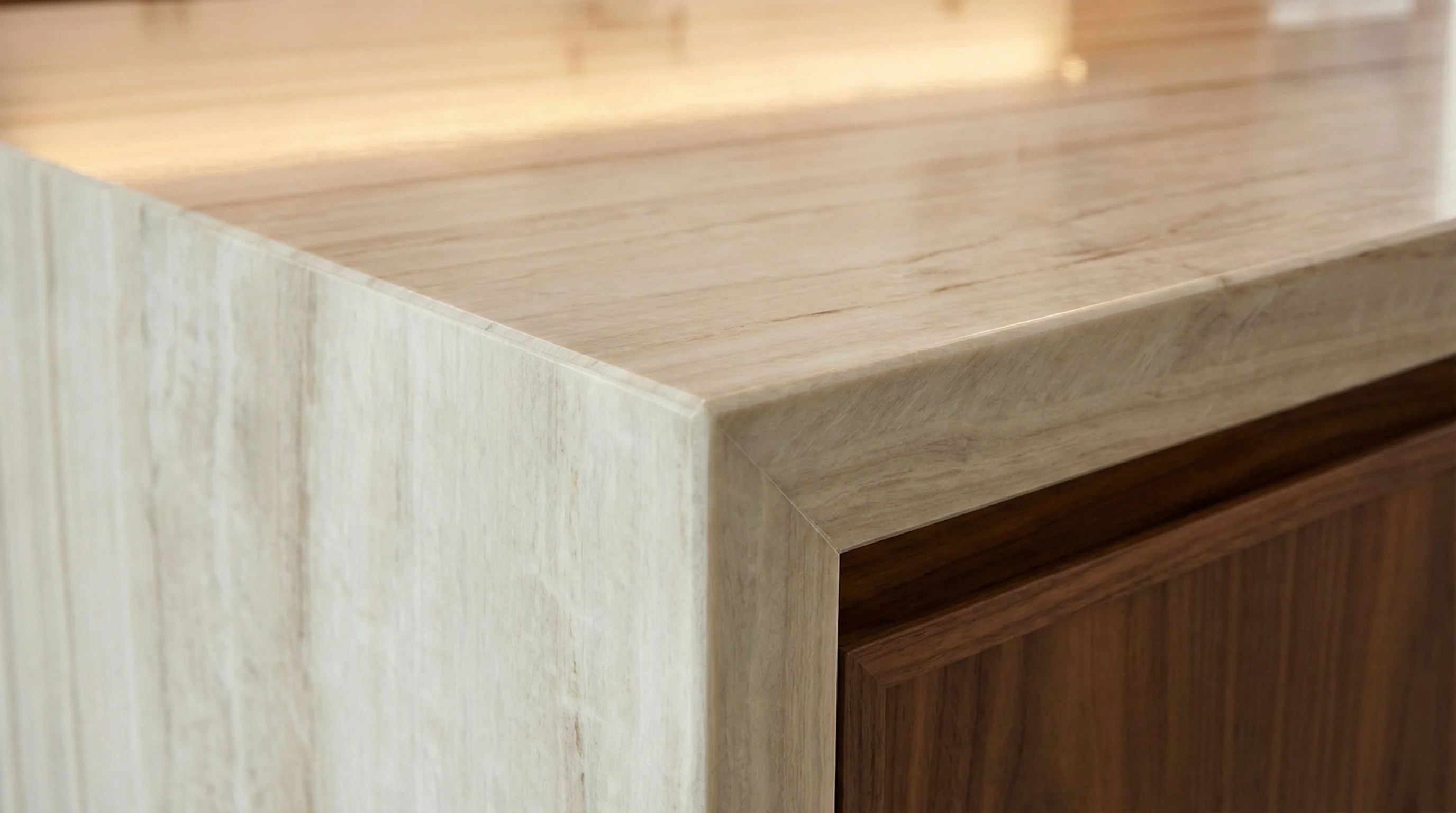 Этот материал вобрал в себя эстетику благородного дерева и непоколебимую прочность природной стихии. Изысканная фактура с мягкими параллельными линиями в кремовых и песочных оттенках создает эффект визуального расширения пространства, наполняя его внутренним светом и гармонией. Каждая деталь обладает уникальным рисунком, который придает интерьеру архитектурную чистоту и современную элегантность.