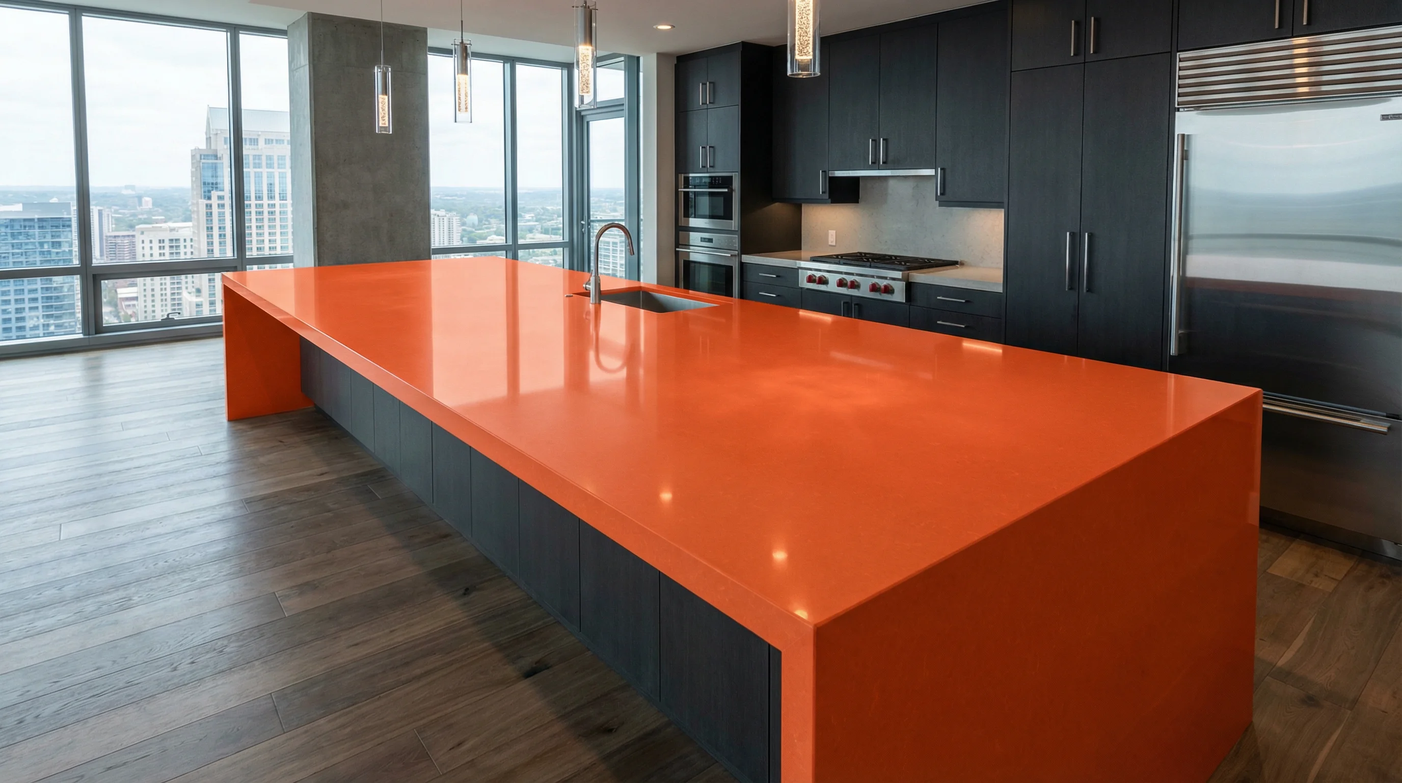 Монолитная структура материала обеспечивает не только эстетическое совершенство, но и непревзойденную практичность. Поверхность устойчива к механическим повреждениям и термическому воздействию, сохраняя свой первозданный лоск в условиях интенсивного использования. Благодаря отсутствию пористости, покрытие не впитывает влагу и загрязнения, оставаясь гигиеничным и максимально простым в ежедневном уходе.