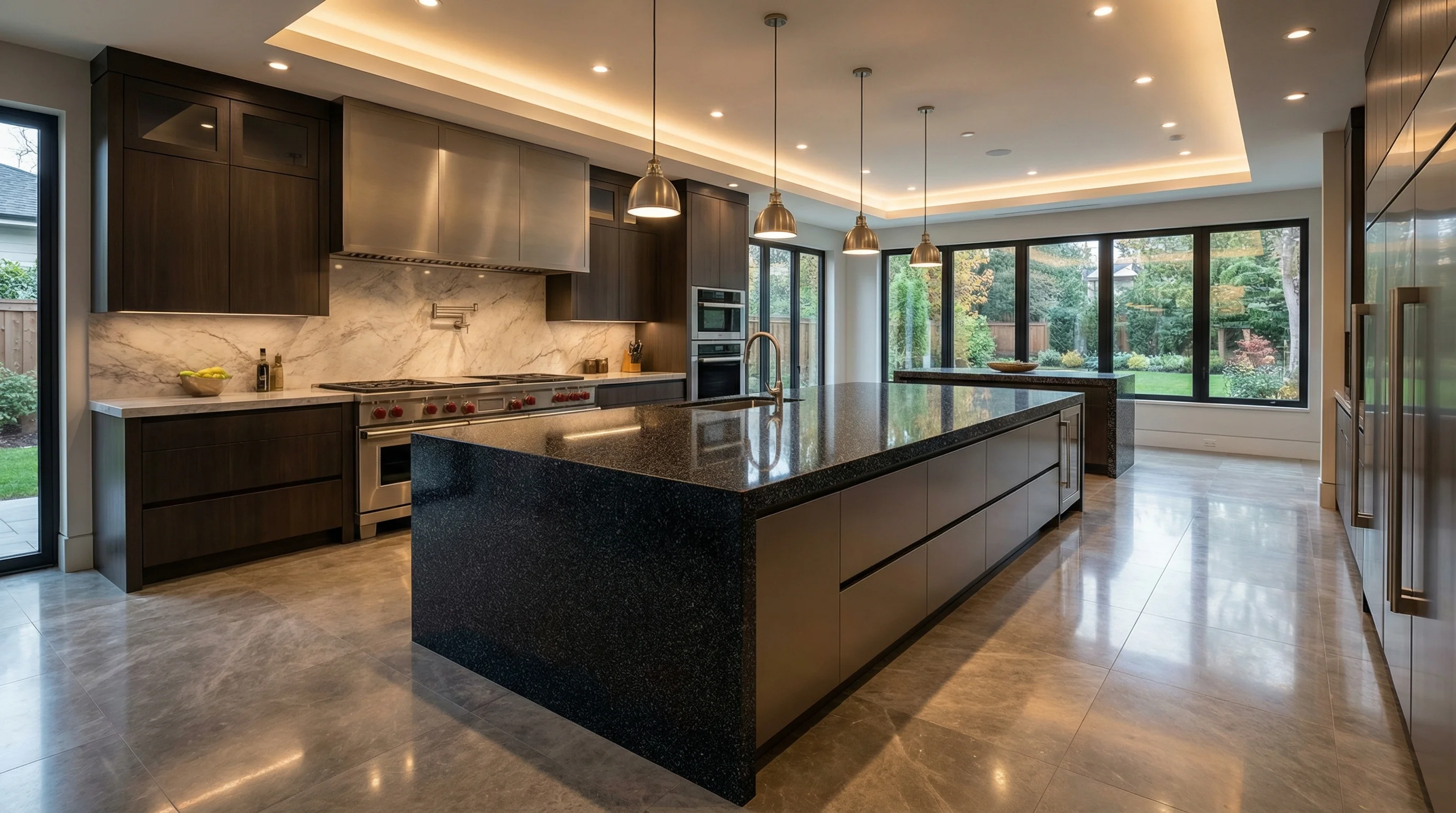 Этот оттенок воплощает в себе благородную сдержанность и эстетику современной роскоши. Глубокий антрацитовый тон с деликатными вкраплениями создает эффект визуальной глубины, которая по-разному раскрывается при изменении сценариев освещения. Поверхность притягивает взгляд своей графитовой сложностью, превращая пространство в гармоничный и завершенный архитектурный ансамбль.