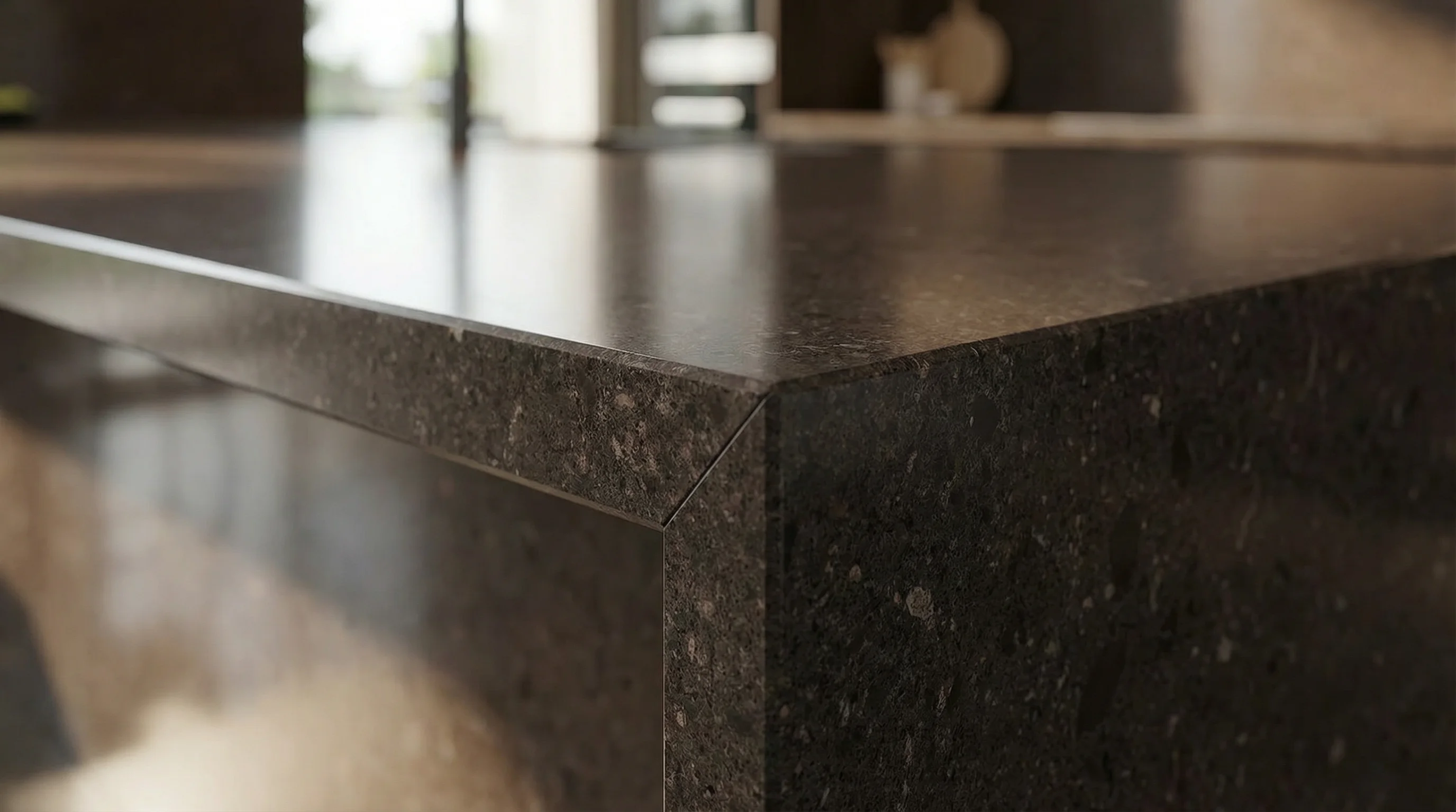 Поверхность изделия раскрывается в глубоких, насыщенных тонах, создавая магнетическое притяжение в центре интерьера. Уникальный зернистый рисунок придает текстуре осязаемый объем и архитектурную сложность, превращая функциональный элемент в объект современного искусства. В зависимости от освещения, насыщенный оттенок обретает мягкий сатиновый блеск, подчеркивающий благородство и статусность пространства.
