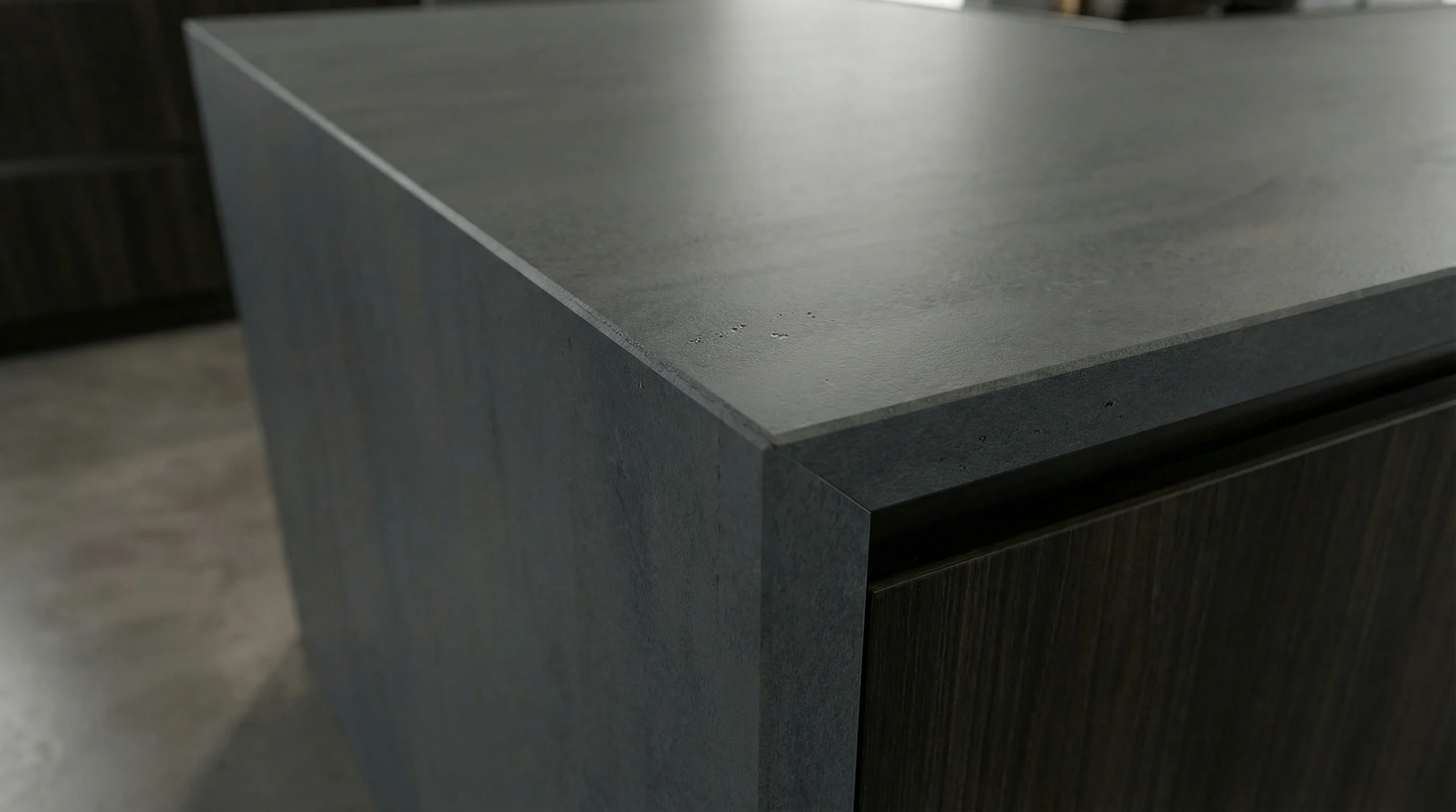 Эта поверхность притягивает взгляд своей глубокой, нюансированной текстурой, в которой угадываются черты первозданной природы. Мягкие переходы темных графитовых оттенков создают визуальный объем и ощущение спокойствия, превращая пространство в зону абсолютного комфорта. Бархатистая фактура материала дарит приятные тактильные ощущения, подчеркивая премиальный характер и эстетическую завершенность изделия.