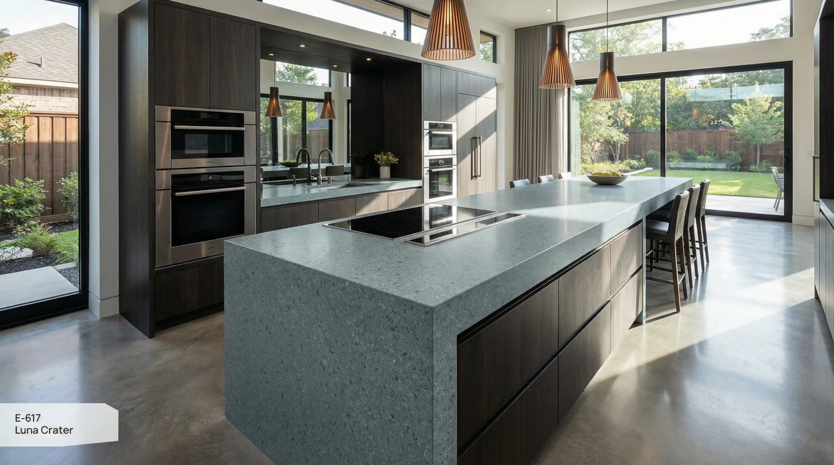 Глубокая и холодная палитра этого покрытия воссоздает эстетику бескрайнего ночного неба, где мельчайшие кристаллические вкрапления оживают при каждом попадании света. Уникальная мелкозернистая текстура создает визуальный объем, напоминающий подернутую дымкой поверхность далекой планеты. Это безупречный выбор для тех, кто ищет гармонию между монументальностью природы и утонченным современным дизайном.