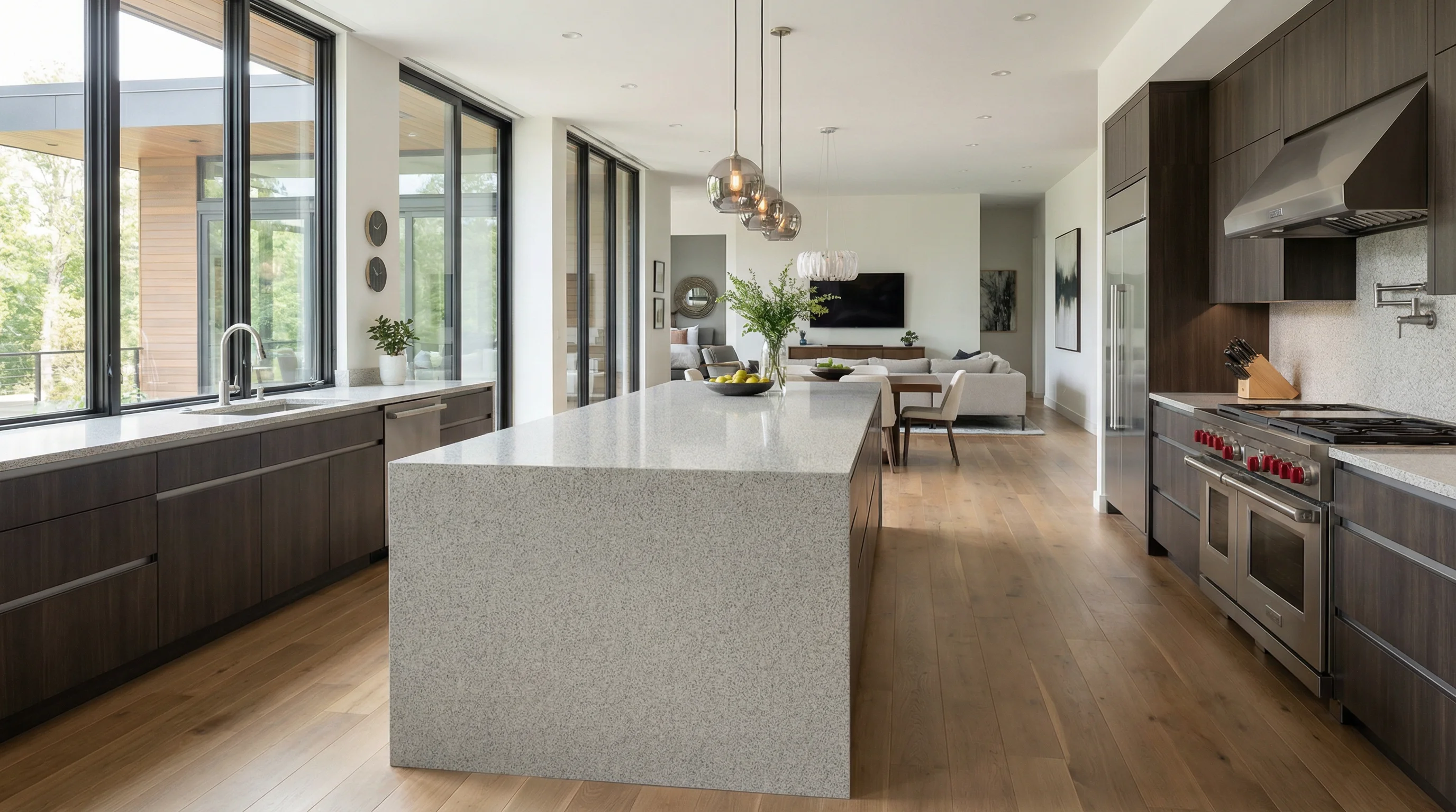 Благородное сочетание теплого оттенка слоновой кости и деликатных темных вкраплений создает завораживающую глубину, которая преображает пространство. Мелкозернистая текстура поверхности напоминает легкую дымку или рассыпанные по утреннему снегу пряности, привнося в интерьер ощущение спокойствия и утонченного вкуса. Этот материал идеально балансирует между строгим минимализмом и уютной классикой, становясь безупречным фоном для кулинарных шедевров и теплых встреч.
