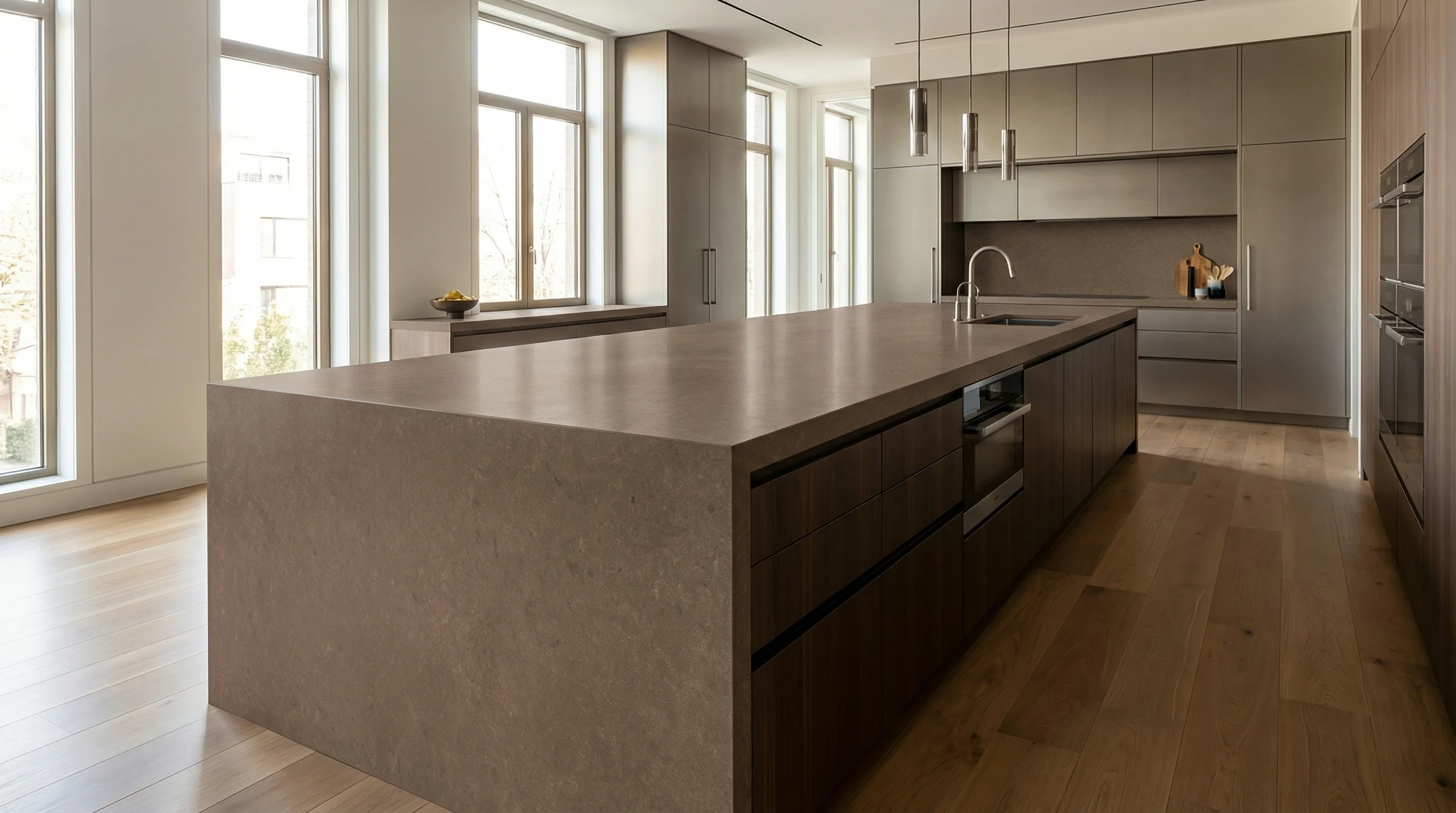 Это воплощение первозданной силы и утонченной природной эстетики. Уникальная текстура поверхности, вдохновленная мельчайшими частицами застывшей лавы, завораживает своей глубиной и деликатным матовым сиянием. Сложный кофейно-землистый оттенок с едва уловимыми вкраплениями создает живую игру света, привнося в интерьер ощущение абсолютной уверенности и фундаментального спокойствия.