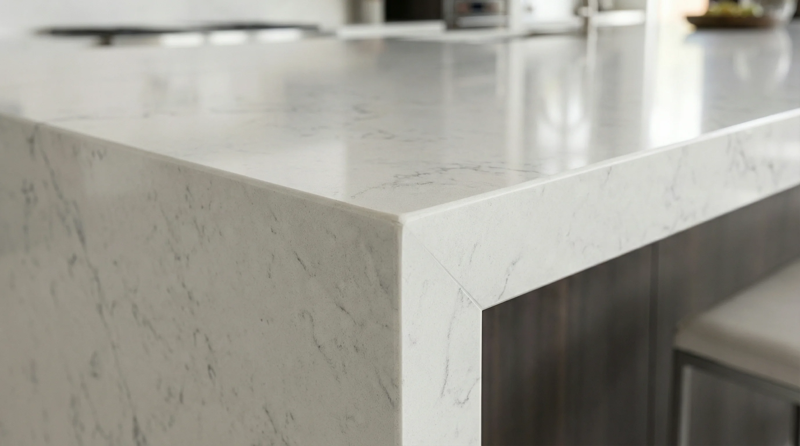 Эта поверхность воплощает в себе гармонию современного минимализма и природного благородства. На безупречно светлом фоне, словно тонкие росчерки пера, переплетаются мягкие дымчатые нити, создавая неповторимый динамичный узор. Такое исполнение наполняет интерьер воздухом и светом, превращая рабочее пространство в центральный элемент эстетической композиции дома.