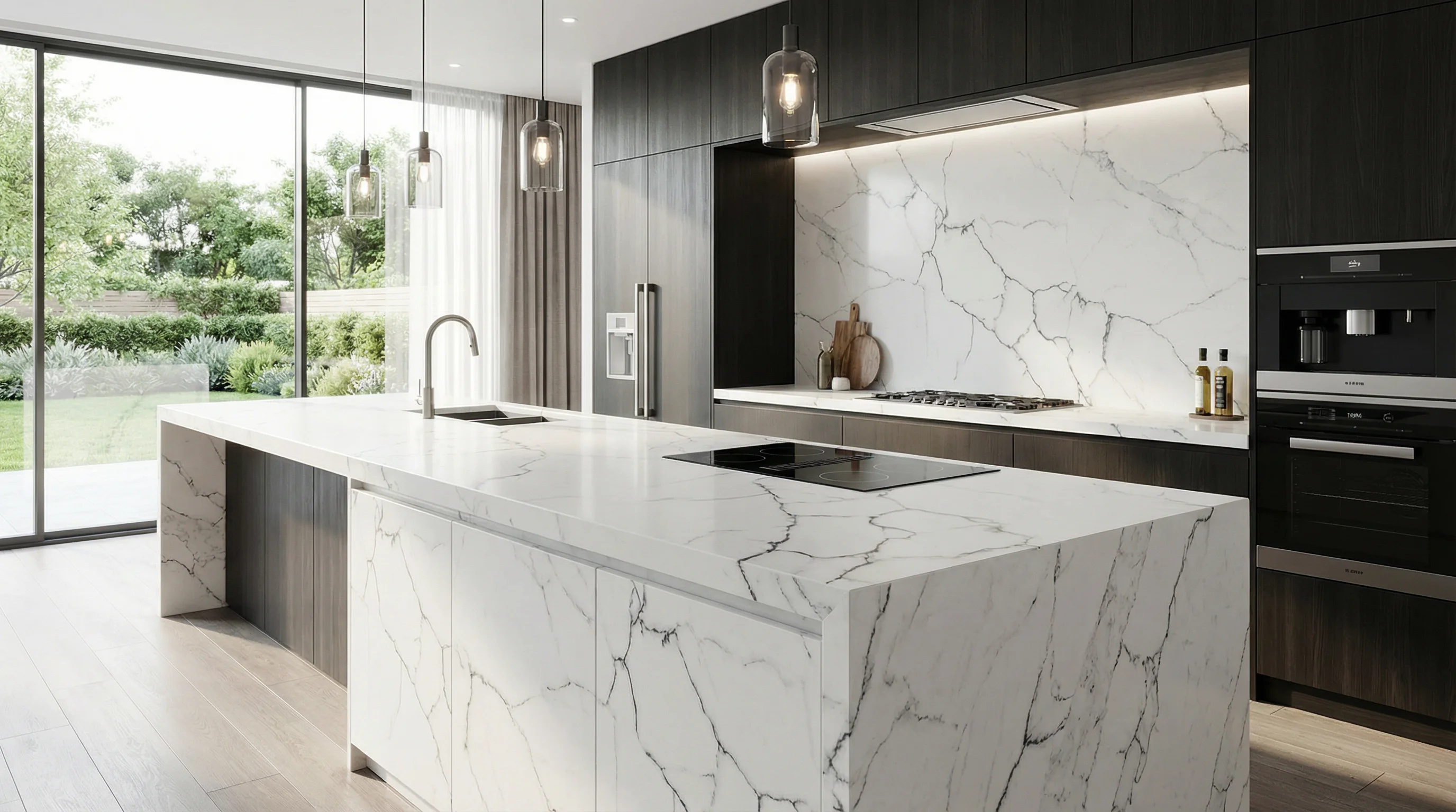 Это воплощение безупречного стиля и природной гармонии. Поверхность притягивает взгляд своей кристальной чистотой, на которой едва заметно проступают тонкие серые нити, создавая неповторимый графичный рисунок. Такое решение наполняет пространство светом и ощущением безграничного простора, становясь идеальным акцентом как в современном минимализме, так и в благородной классике.